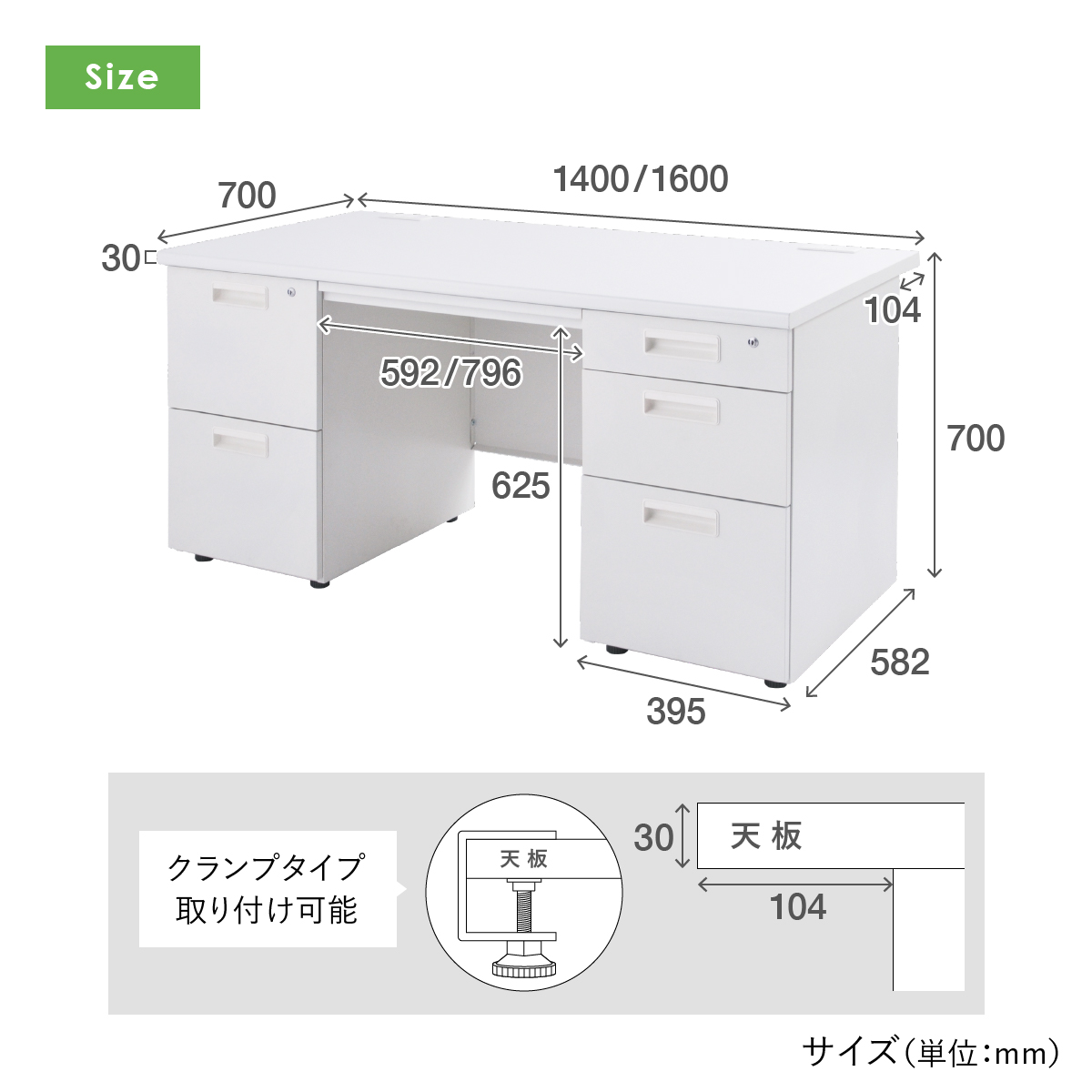 サイズはW1400の他に、W1600の2種類をご用意しております。