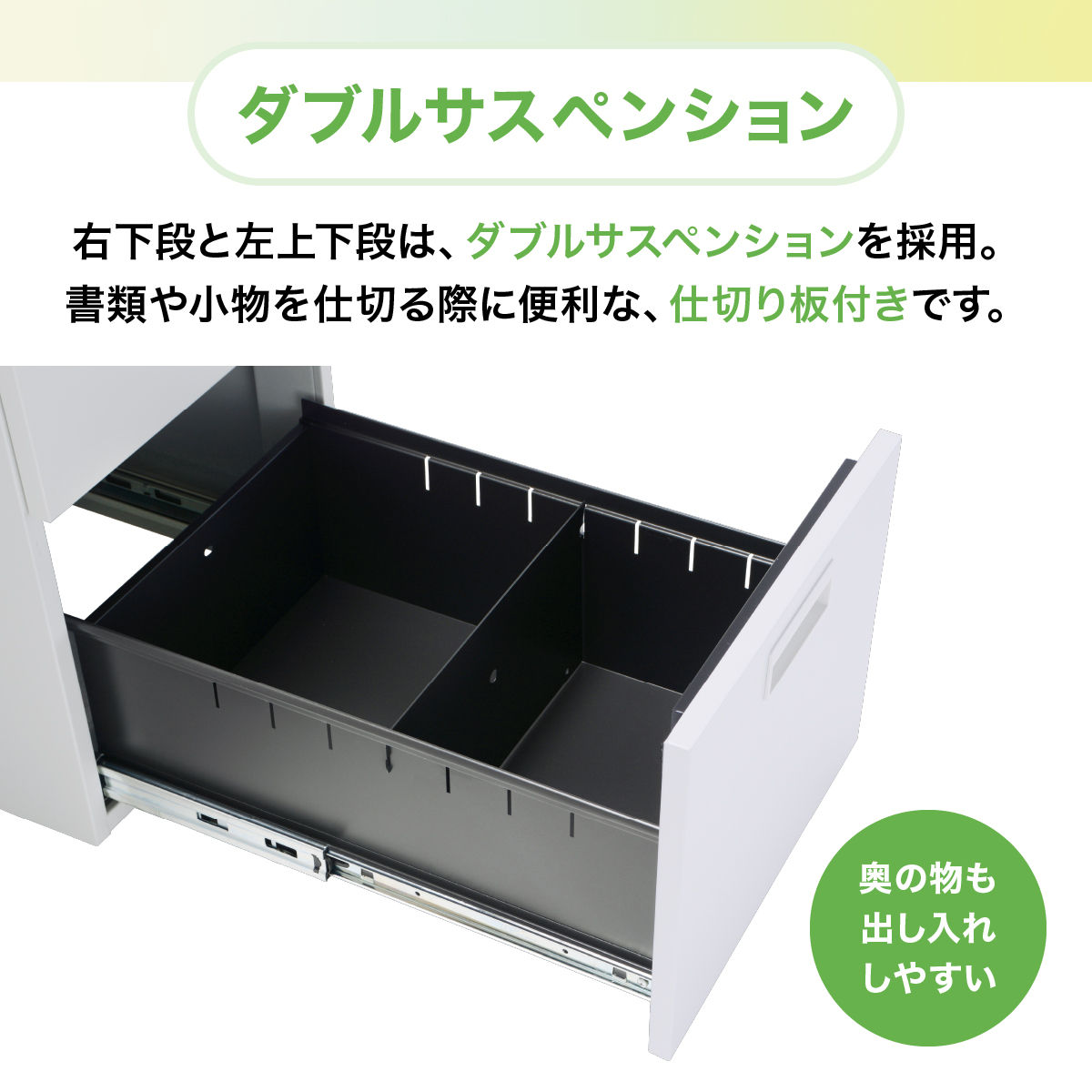 もちろん、三段引出し・二段引出しにはそれぞれ鍵もついており、セキュリティ面でも安心です。