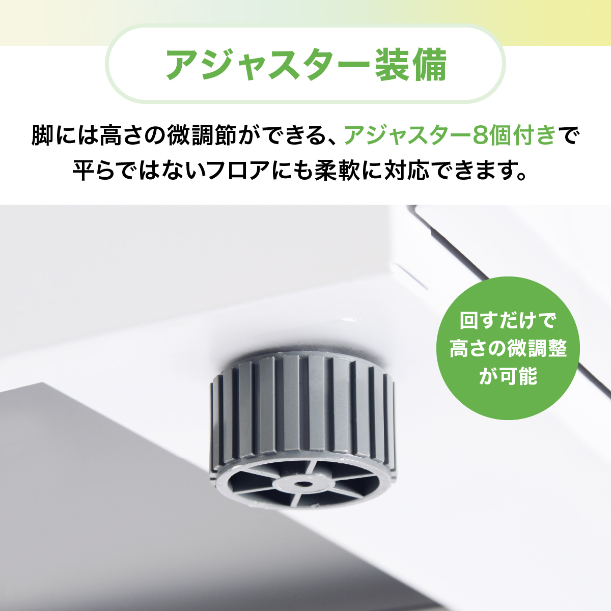 両袖にアジャスター計8個付きで、平らではない所も柔軟に対応可能。