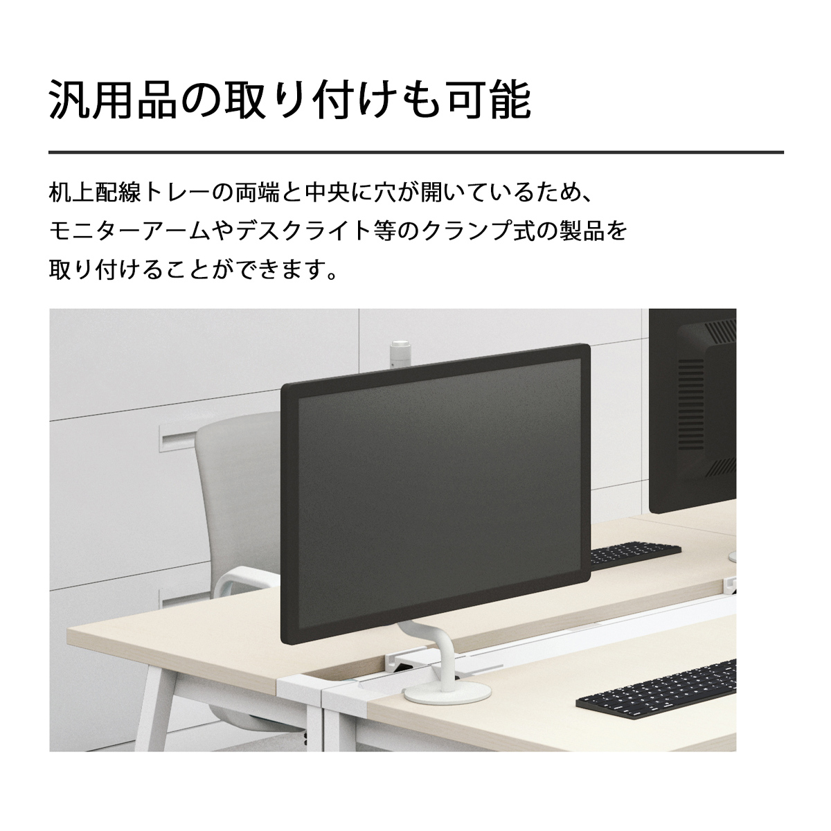 付属のトレーブロック2個を天板奥の配線トレーに設置することで、天板上もより広くお使いいただけます。