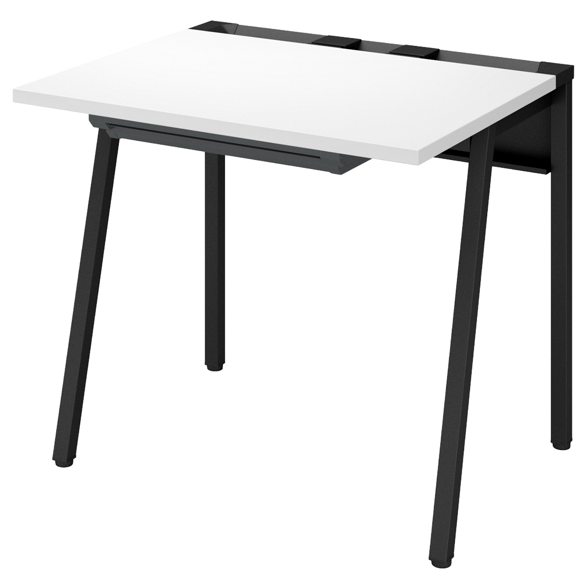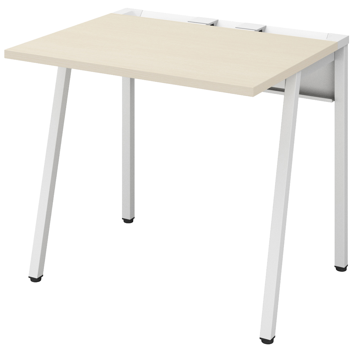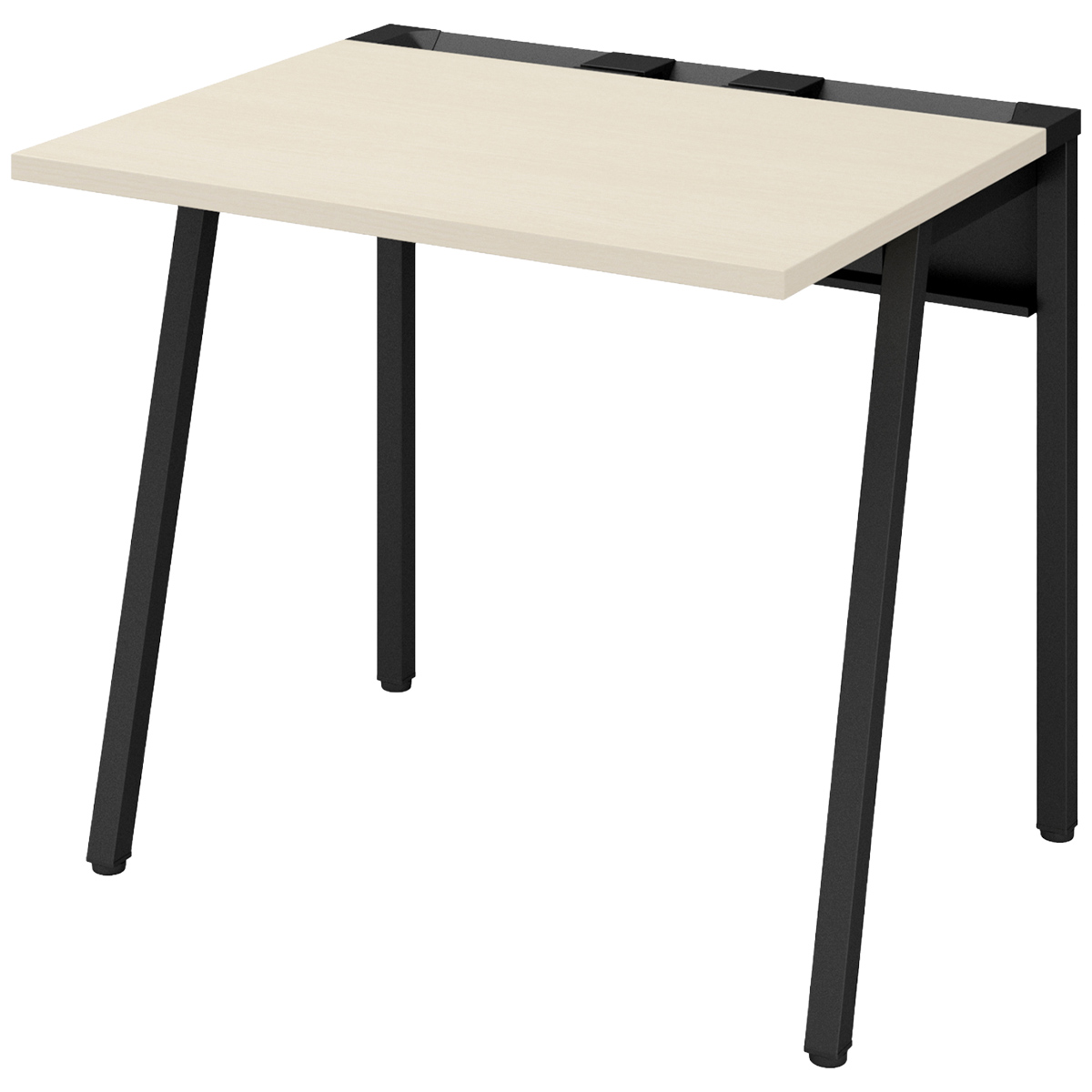 斜め脚のシンプルなデザインが空間をスッキリ見せ、通路脇や共有スペースのサブデスクとして既存家具とも調和します。