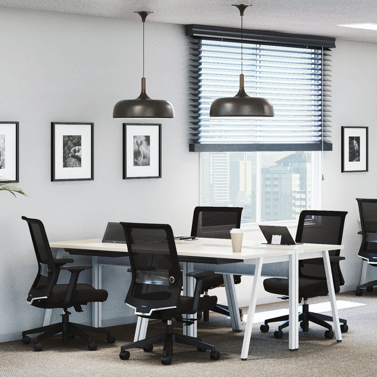 シンプルで主張しすぎないデザインは、既存のオフィス家具とも相性がよく、斜め脚が空間をよりスッキリとみせてくれます。