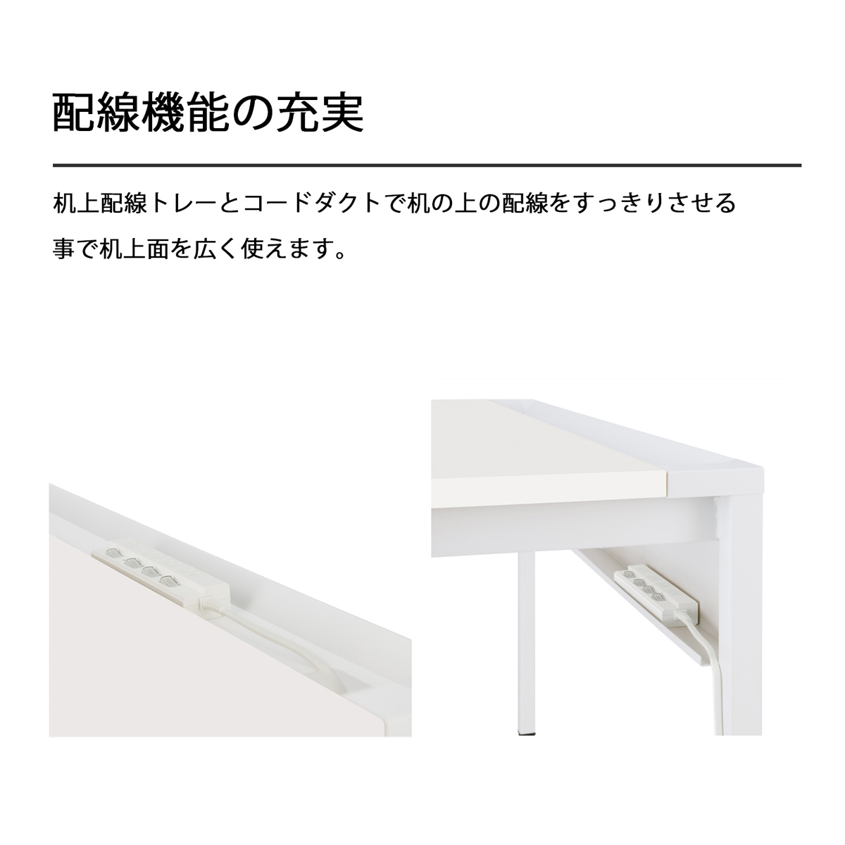 付属のトレーブロック2個を天板奥の配線トレーに設置することで、天板上もより広くお使いいただけます。