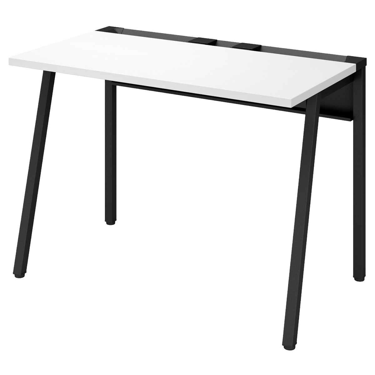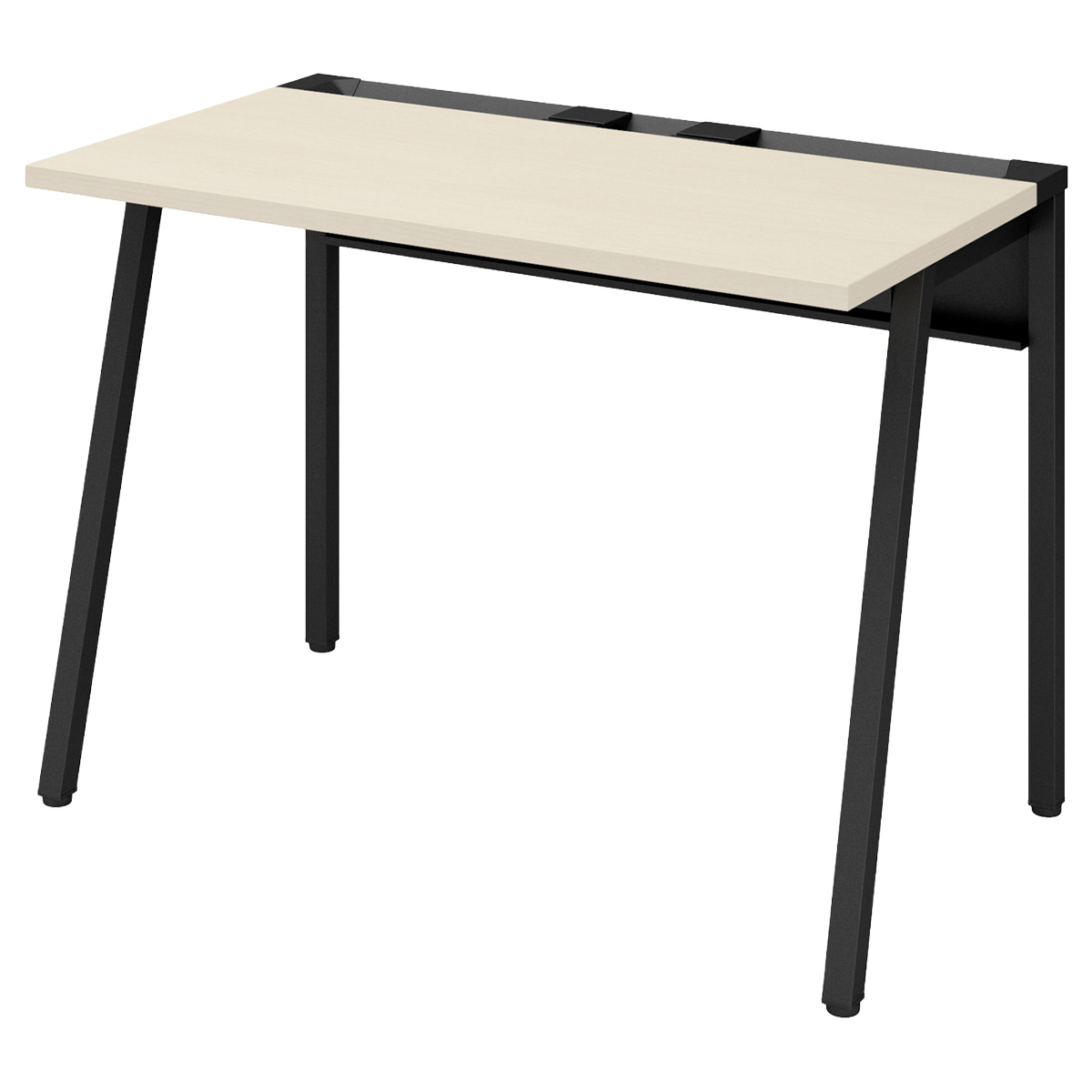 斜め脚のシンプルなデザインが空間をスッキリ見せ、通路脇や共有スペースのサブデスクとして既存家具とも調和します。