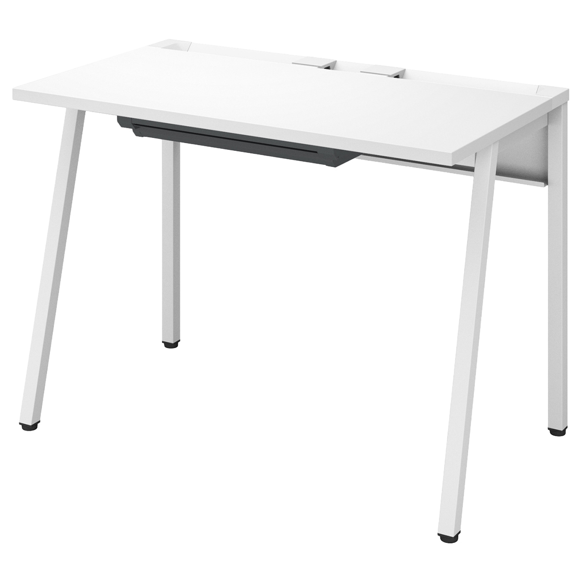| 材質 | 天板: メラミン化粧板、 パーチクルボード、樹脂 (ABS) 脚:スチール(焼付塗装)、樹脂(ABS、PP) 幕板:スチール(焼付塗装) アジャスター:樹脂(エラストマ) コード受け:スチール(焼付塗装) 樹脂パーツ:樹脂(ABS) |