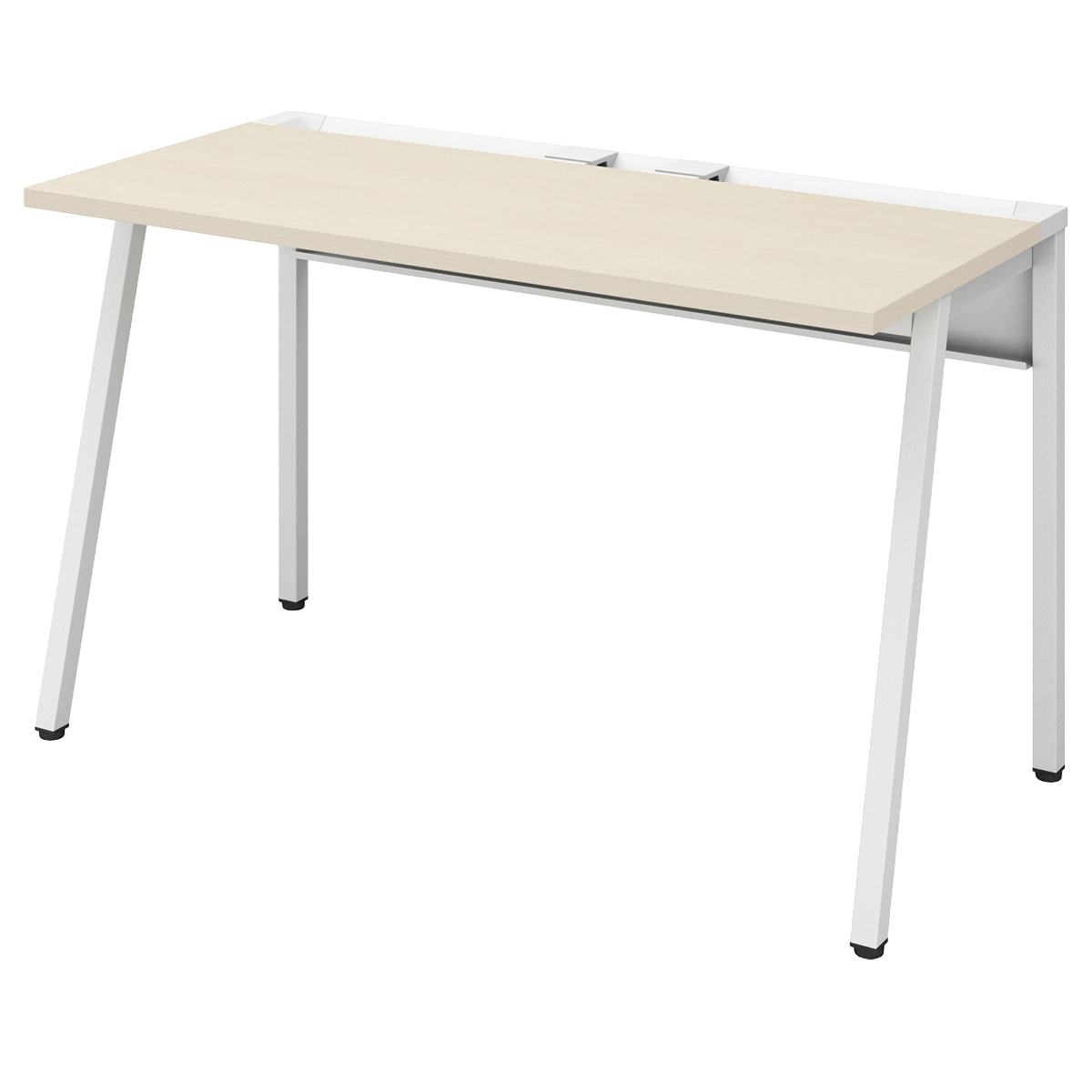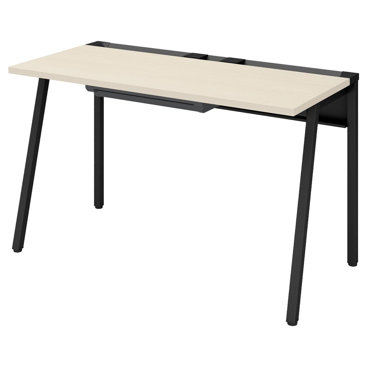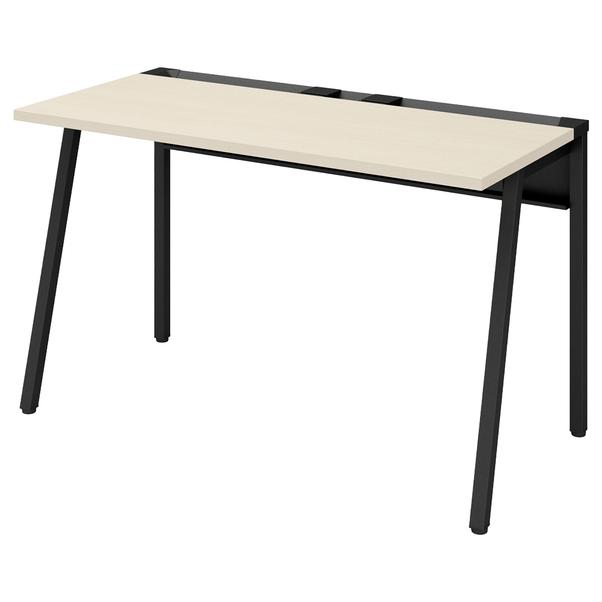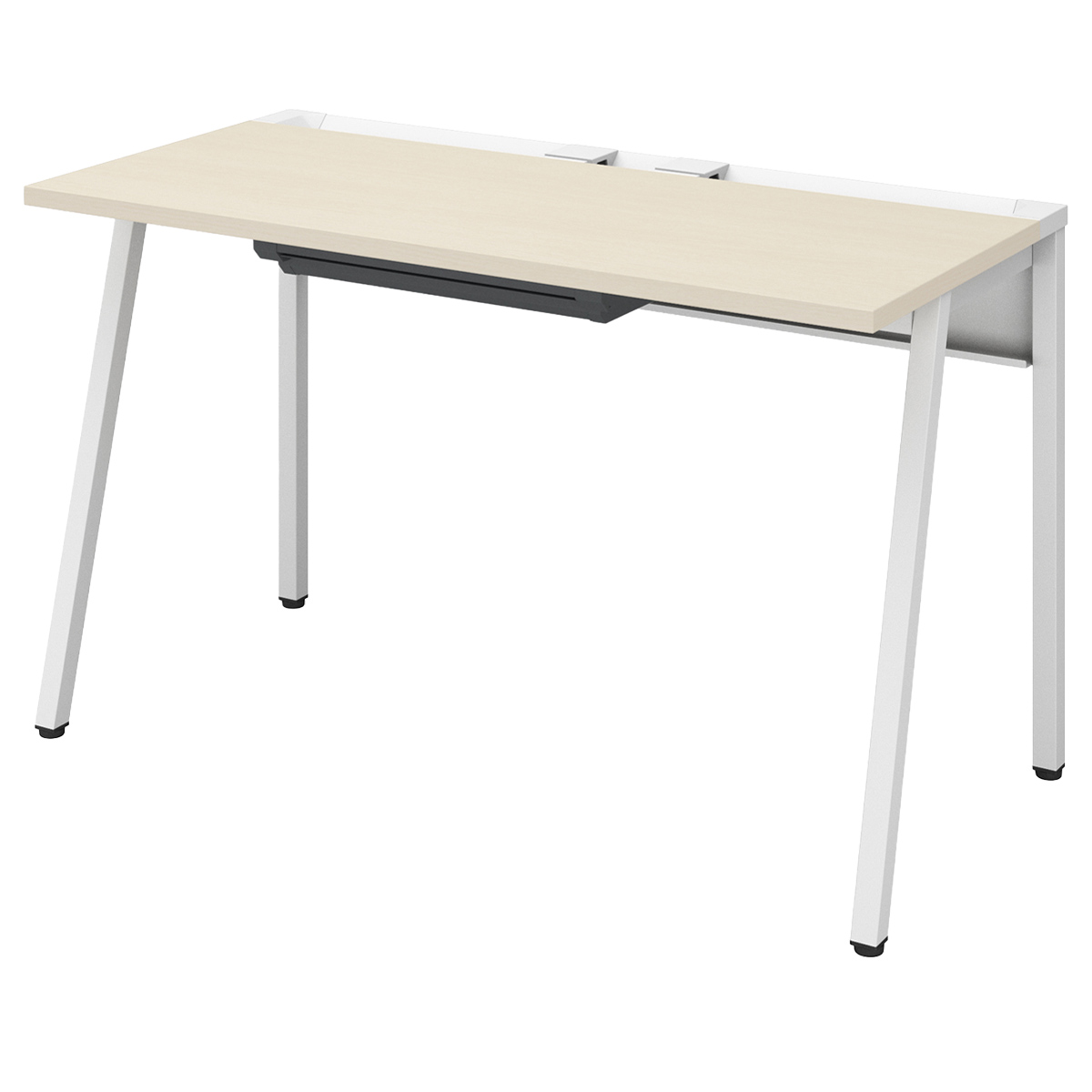 斜め脚のシンプルなデザインが空間をスッキリ見せ、通路脇や共有スペースのサブデスクとして既存家具とも調和します。
