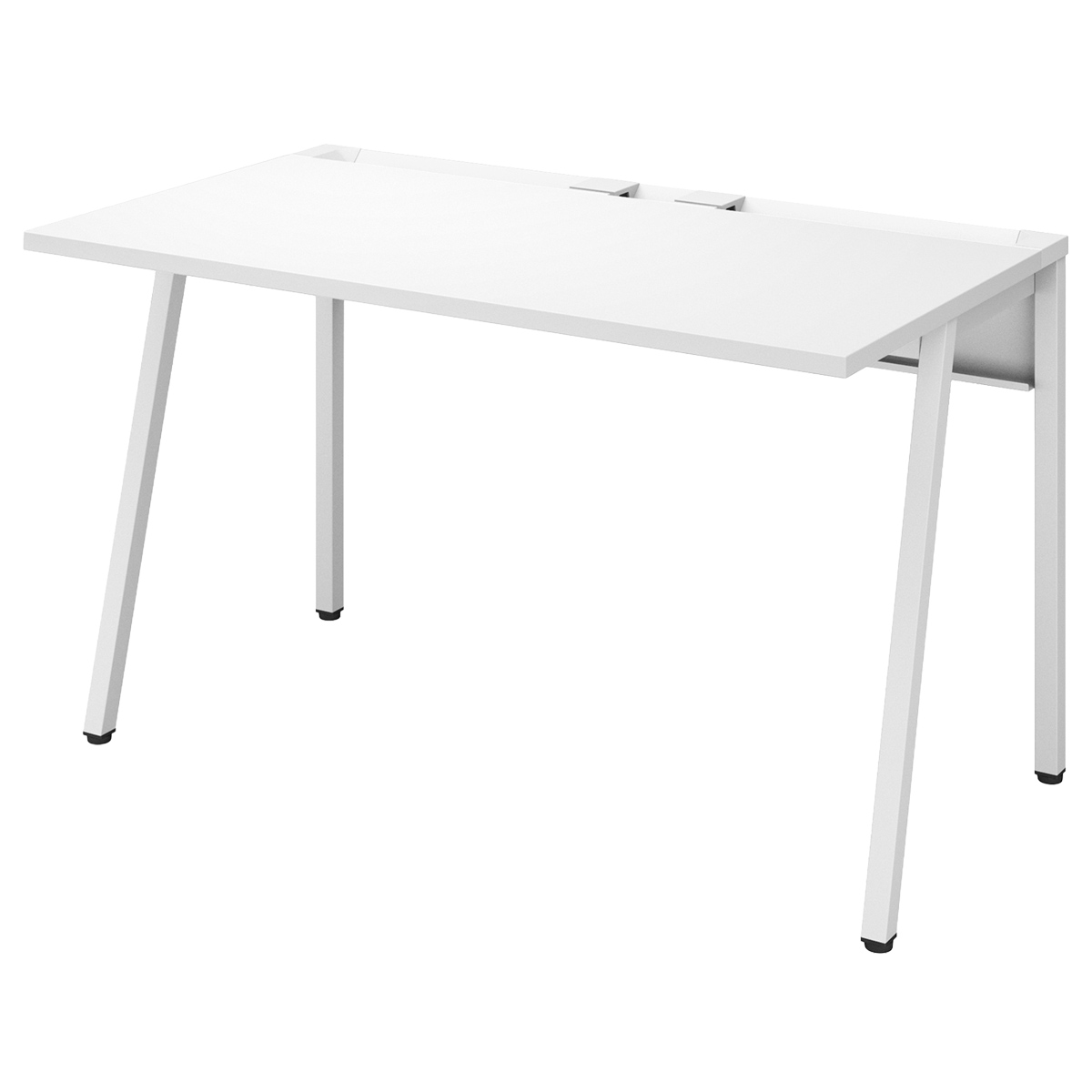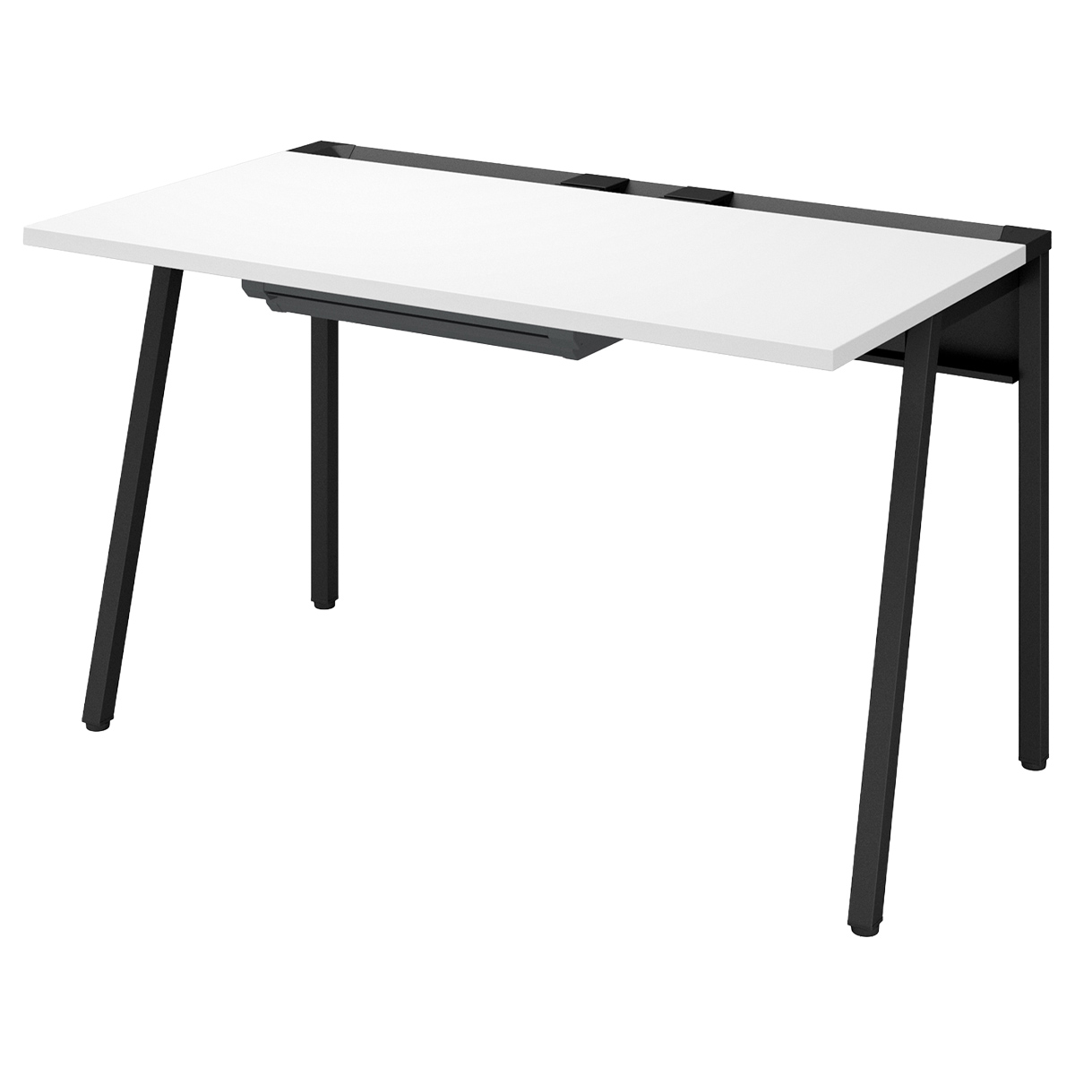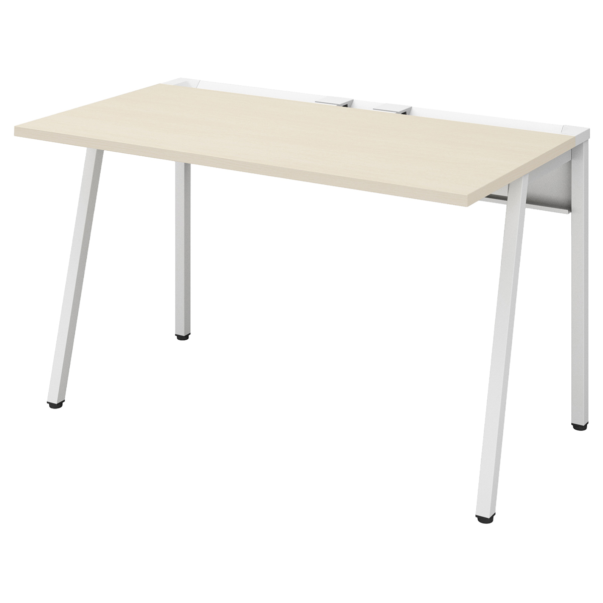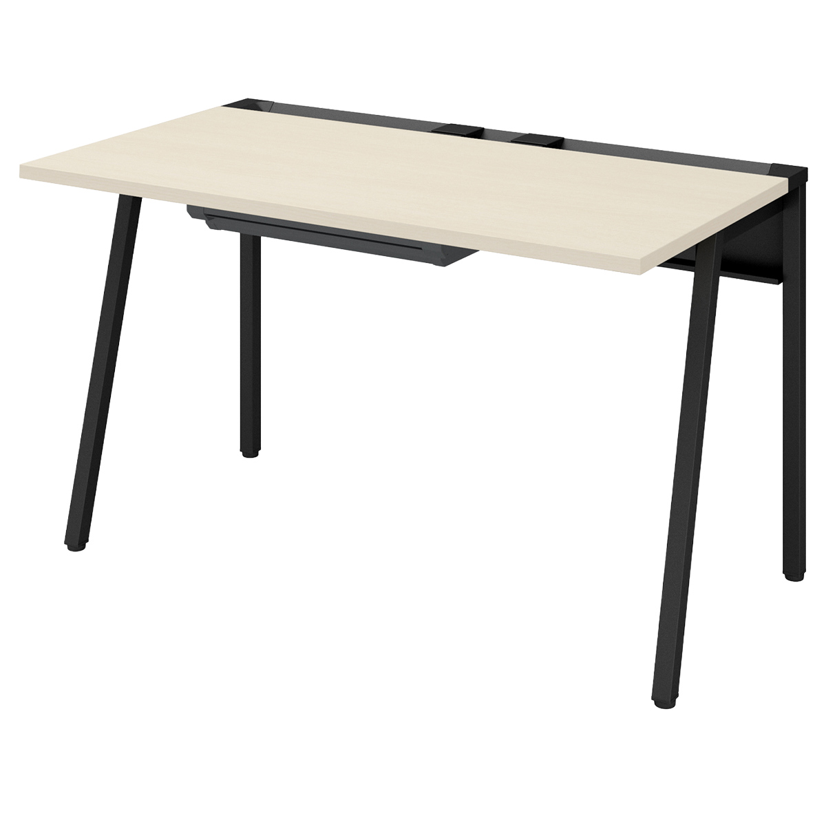 斜め脚のシンプルなデザインが空間をスッキリ見せ、通路脇や共有スペースのサブデスクとして既存家具とも調和します。