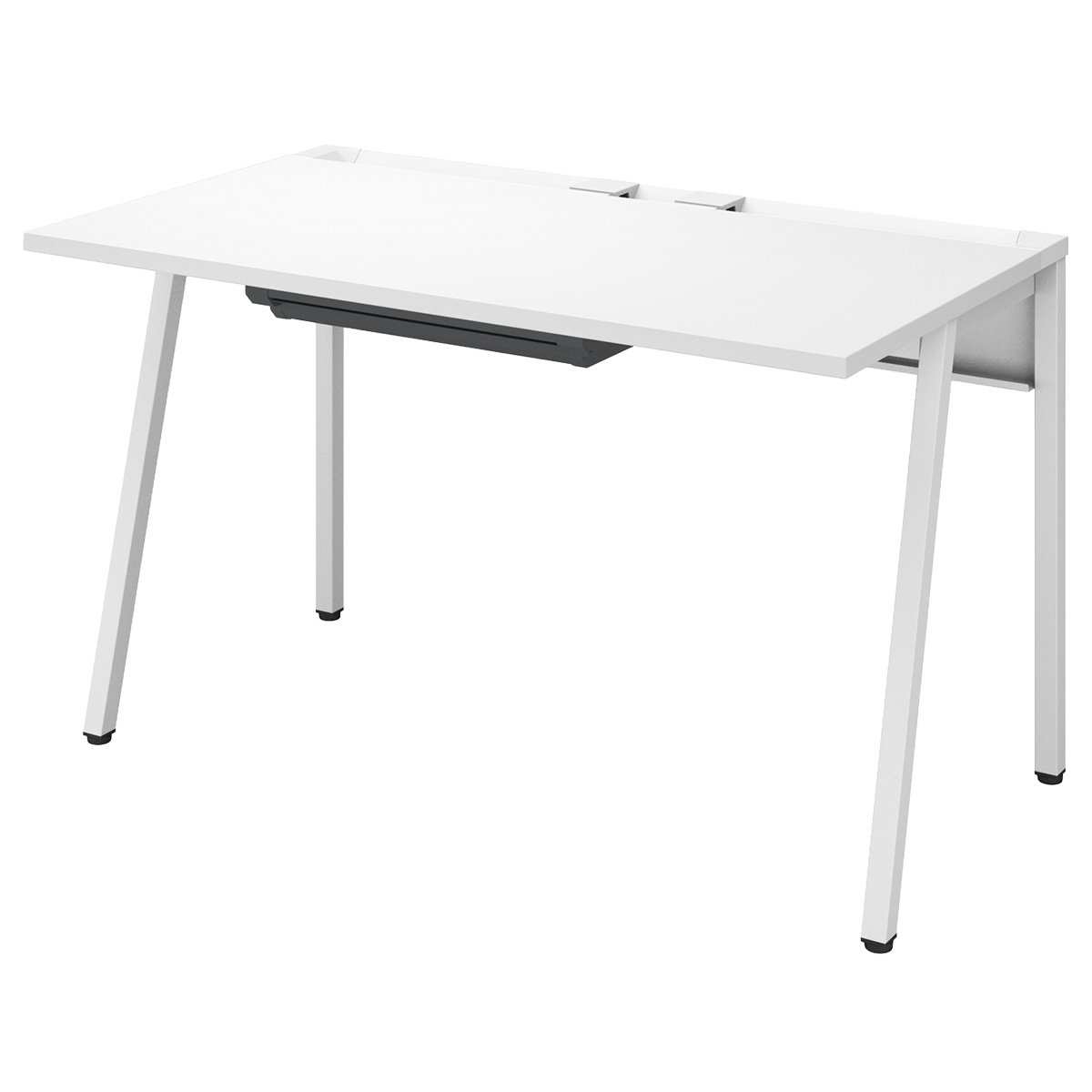 | 材質 | 天板: メラミン化粧板、 パーチクルボード、樹脂 (ABS) 脚:スチール(焼付塗装)、樹脂(ABS、PP) 幕板:スチール(焼付塗装) アジャスター:樹脂(エラストマ) コード受け:スチール(焼付塗装) 樹脂パーツ:樹脂(ABS) |