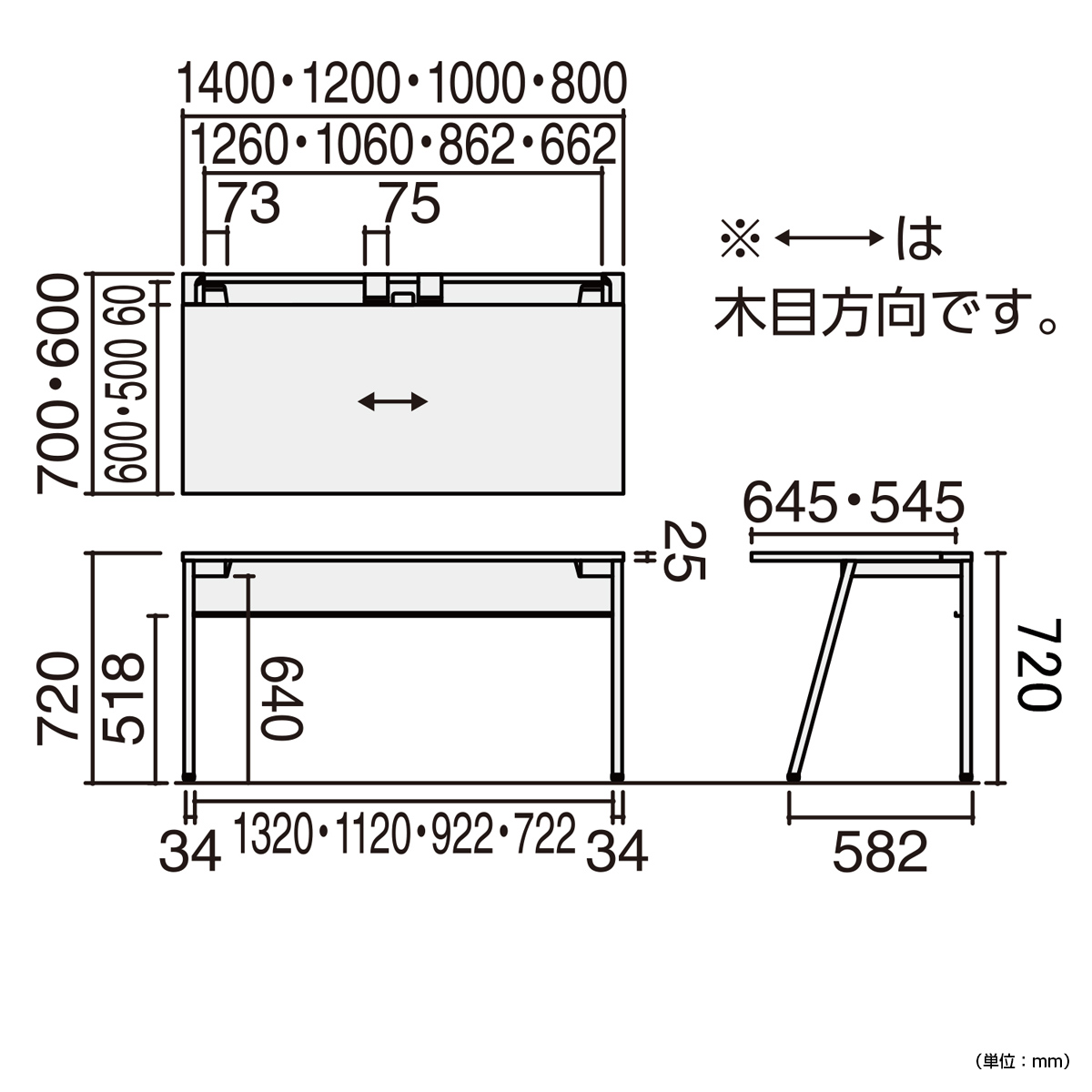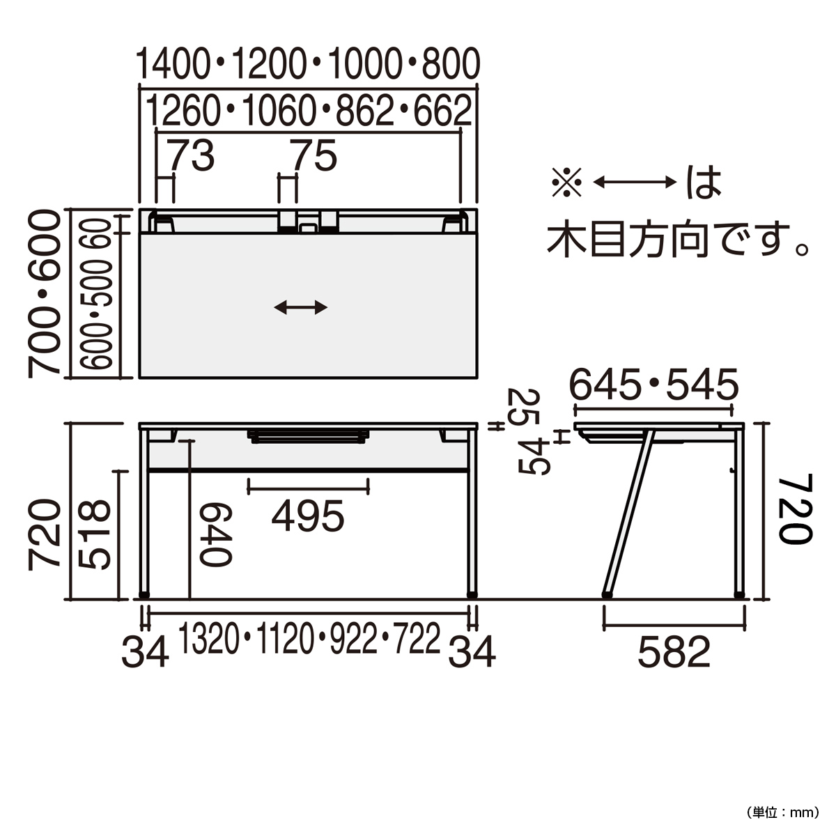 | サイズ | W1400×D600×H720mm |