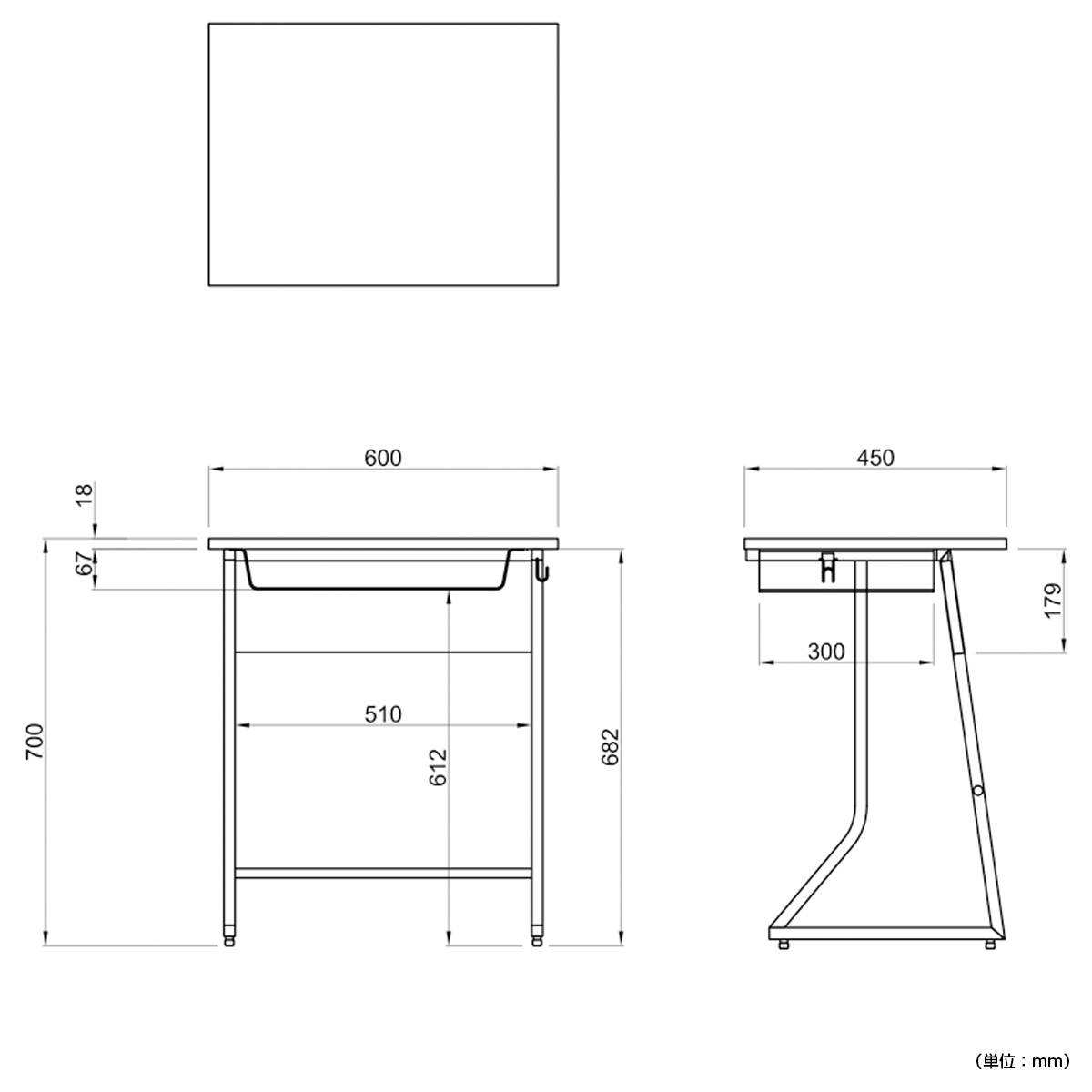 天板は新JIS規格に適合した幅650mm×奥行450mmで、学校の机と同じサイズ感で使用できます。