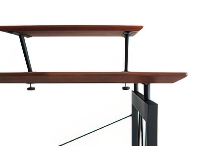 デスク天板に付いている棚板は、クランプ式となっておりますので、使い方に応じて左右に自由に移動させることや取り外すことが可能です。