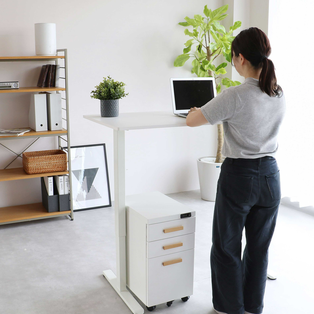 立ち作業と座り作業を自由に切り替えることで、長時間のデスクワークによる身体への負担を効果的に軽減します。