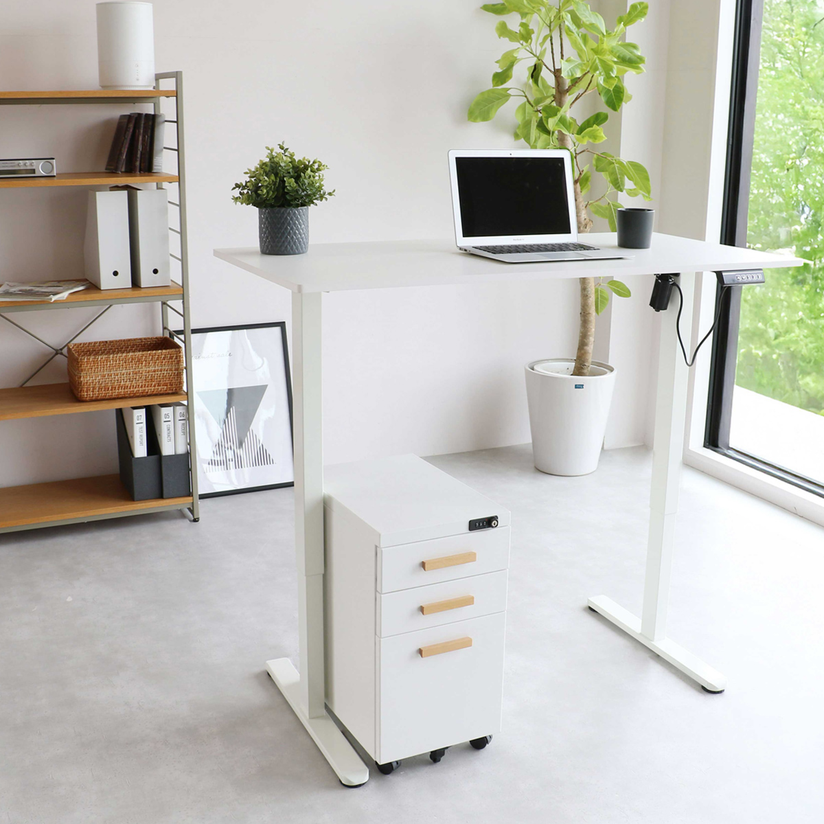 座りすぎを抑えて長時間のデスクワークでも快適な姿勢を維持できる、電動昇降デスクの幅1200mmタイプ。