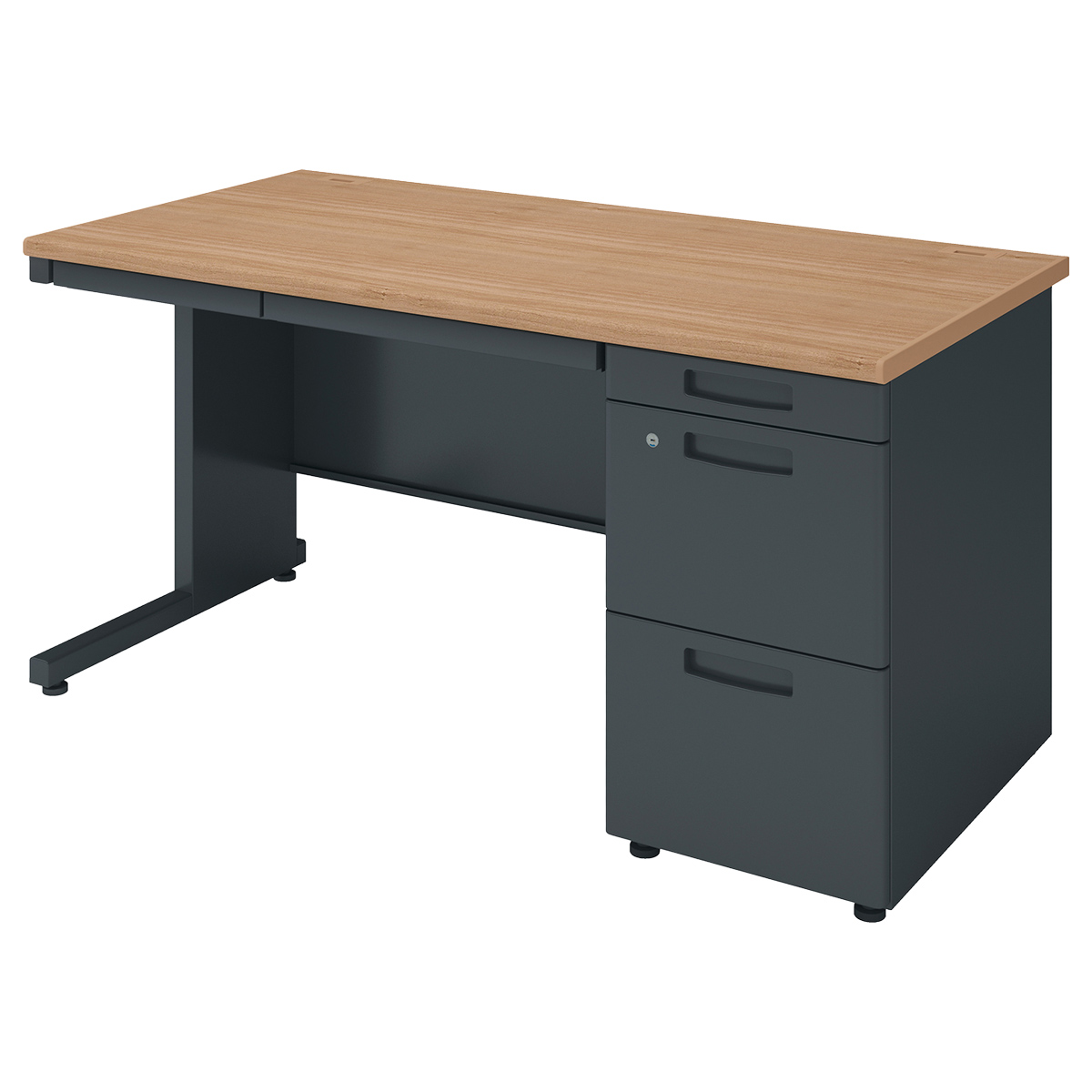 無駄を省いたシンプルデザインながら、オフィスに必要な機能を備えた実用性の高い片袖机です。