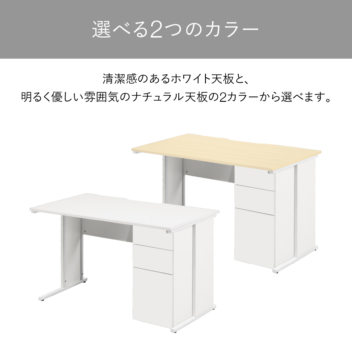 カラーは「ホワイト脚×ホワイト天板」と「ホワイト脚×ナチュラル天板」の2種類をご用意しました。