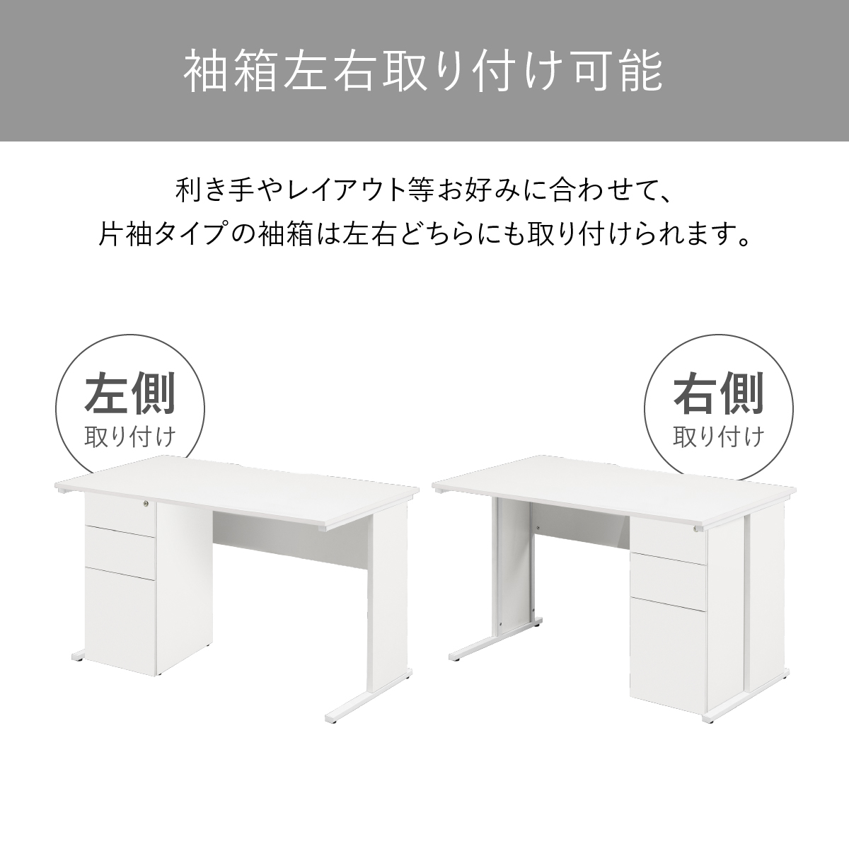 袖箱は左右どちらにも取り付け可能で、レイアウトや業務スタイルに合わせて柔軟に対応できます。