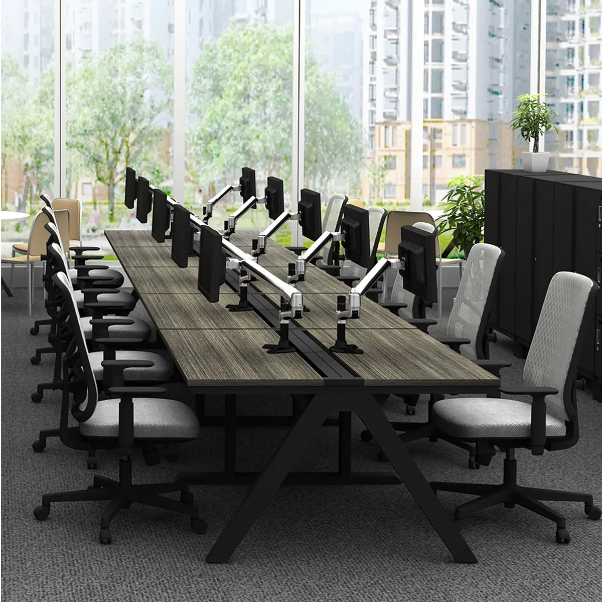 軽快な脚さばきと頑丈な構造で、配線ダクトやモニターアームの取り付けにも対応。