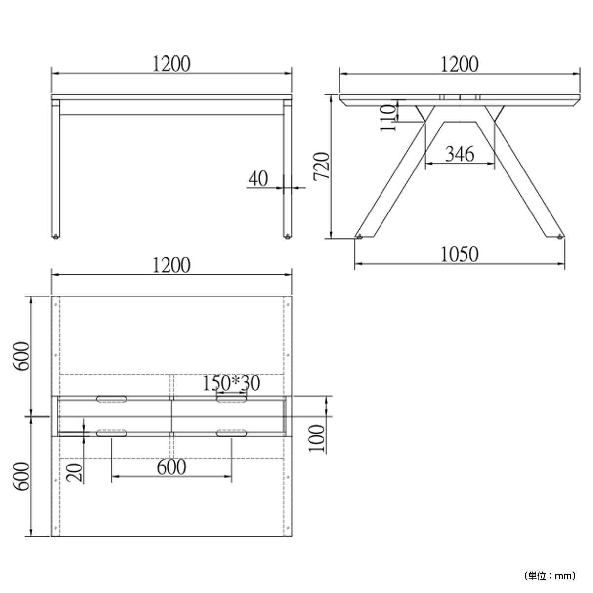 LASH(ラッシュ)両面デスク ラッシュレッグタイプ(W1200×D1200×H720)