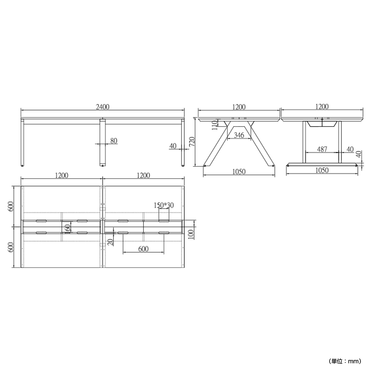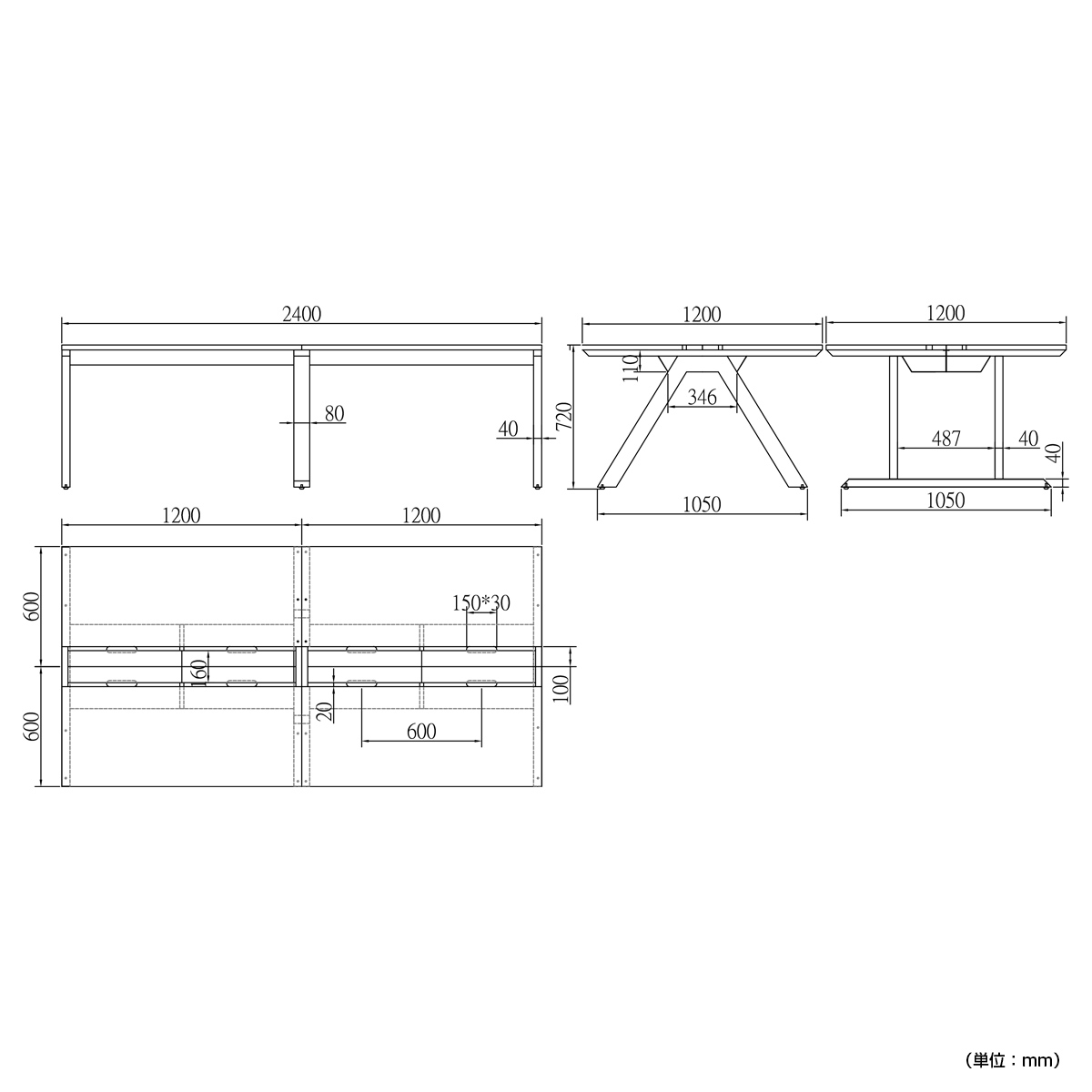 LASH(ラッシュ)両面デスク ラッシュレッグタイプ(W2400×D1200×H720)
