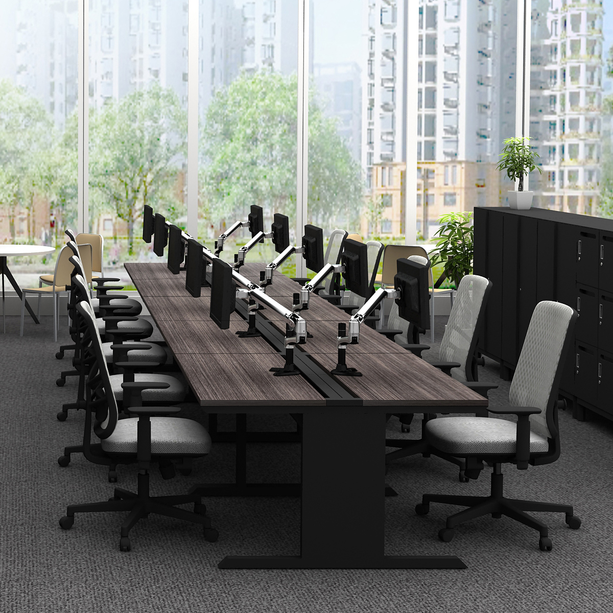 幅3000mmタイプは、3名で広々と快適に、または最大5名で効率的に利用できる、柔軟なデスクサイズです。