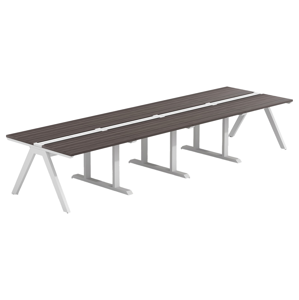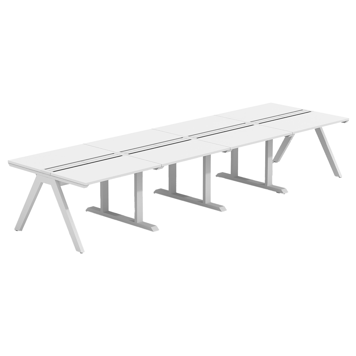 デザインと機能が融合した新しいデスクスタイルが特徴の「ラッシュデスク」の幅4000mm×奥行1200mmタイプ。
