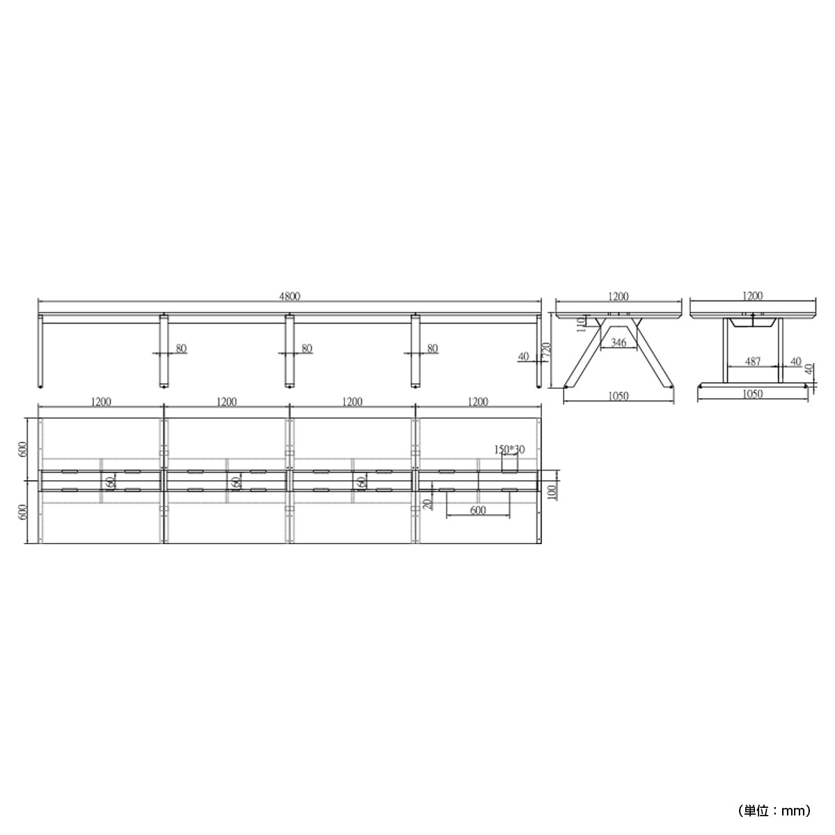 | サイズ | W4800×D1200×H720mm |