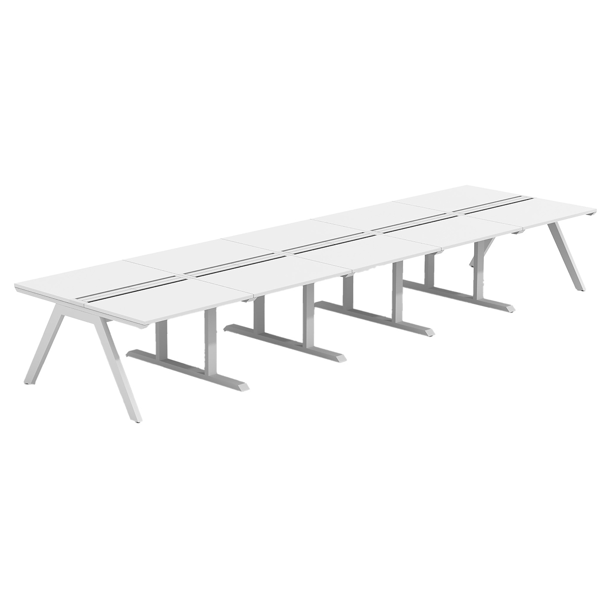 デザインと機能が融合した新しいデスクスタイルが特徴の「ラッシュデスク」の幅5000mm×奥行1400mmタイプ。