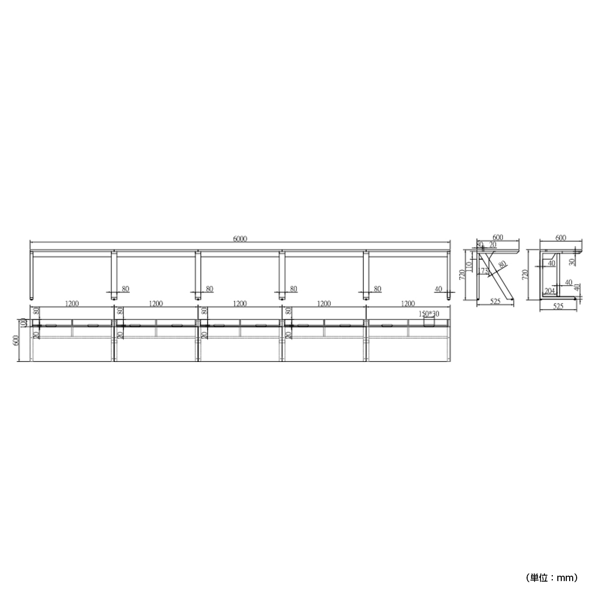 LASH(ラッシュ)片面デスク ラッシュレッグタイプ(W6000×D600×H720)