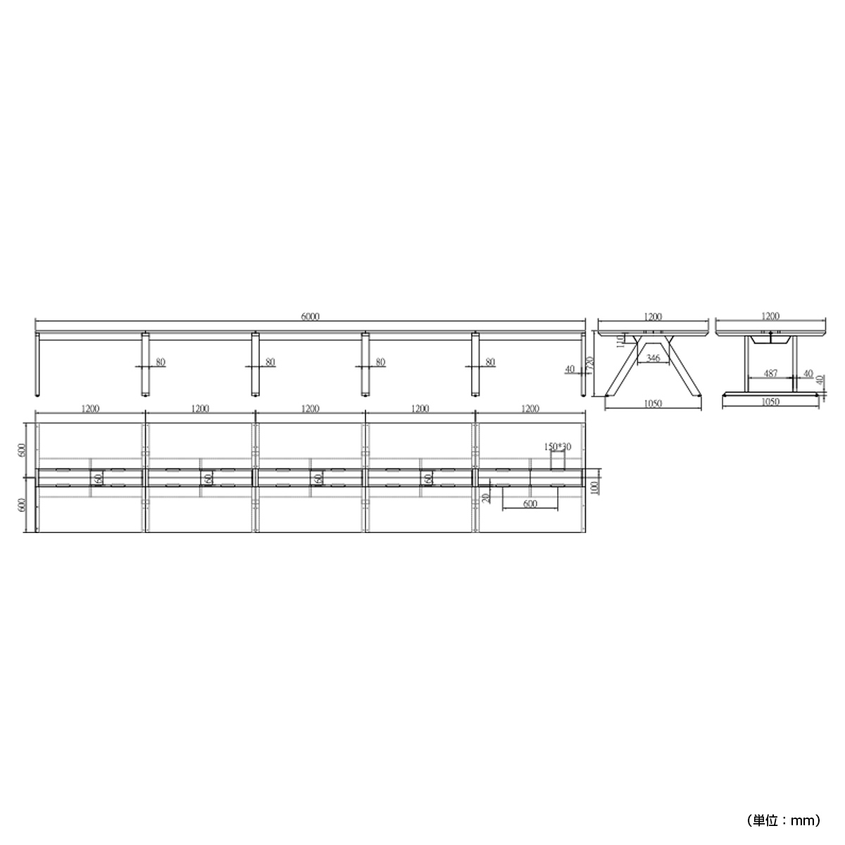| サイズ | W6000×D1200×H720mm |