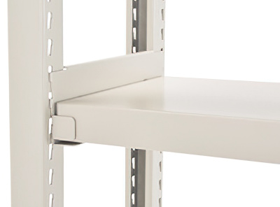 ソフトな印象のアイボリー色のスチール棚は、工場や配送センターはもとより、一般のオフィスや店舗等、あらゆる分野で違和感なくご使用いただけます。