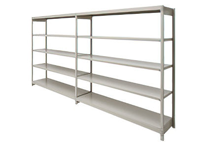 ソフトな印象のアイボリー色のスチール棚は、工場や配送センターはもとより、一般のオフィスや店舗等、あらゆる分野で違和感なくご使用いただけます。