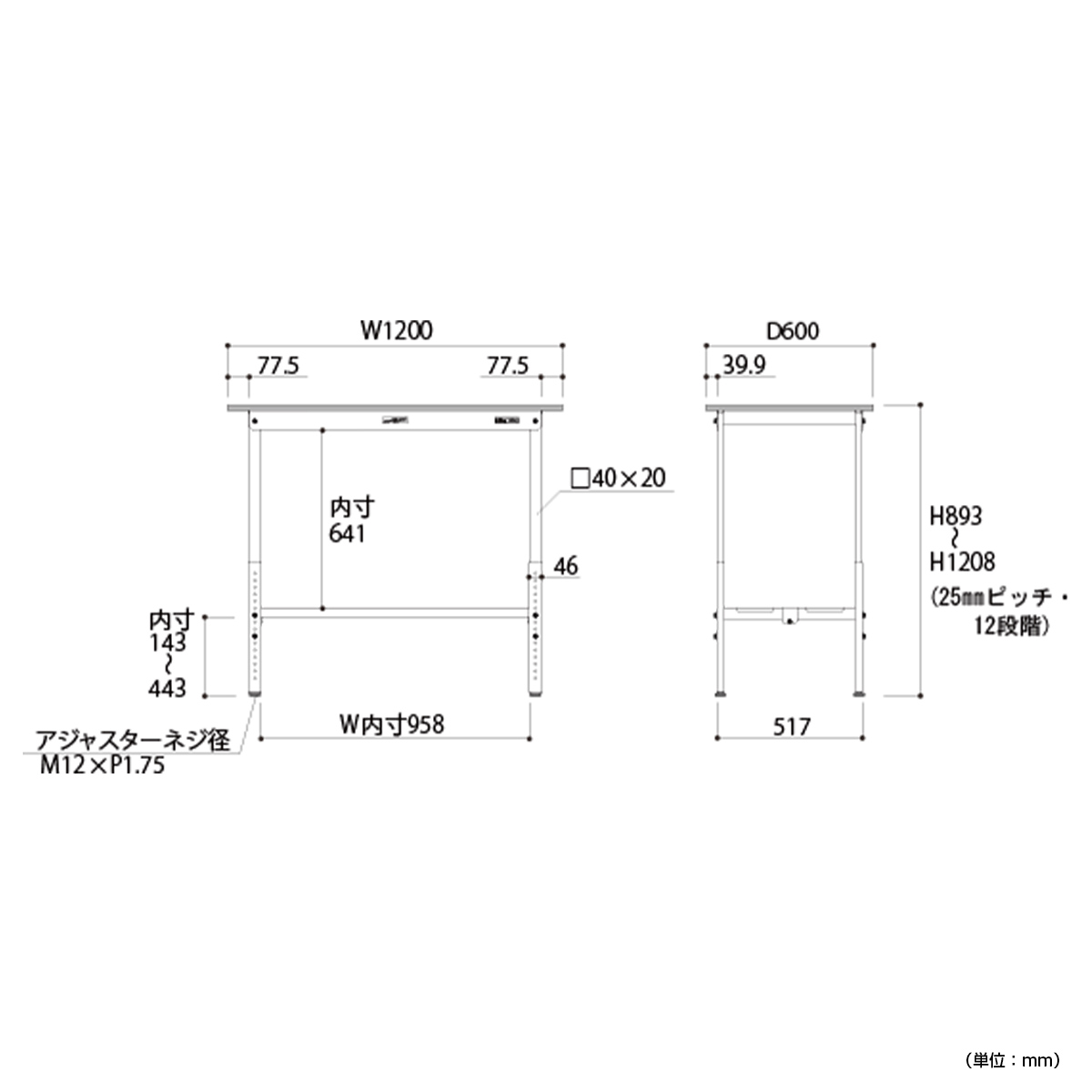 高さ調節式ワークテーブル ハイタイプ(W1200×D600×H900-1200)