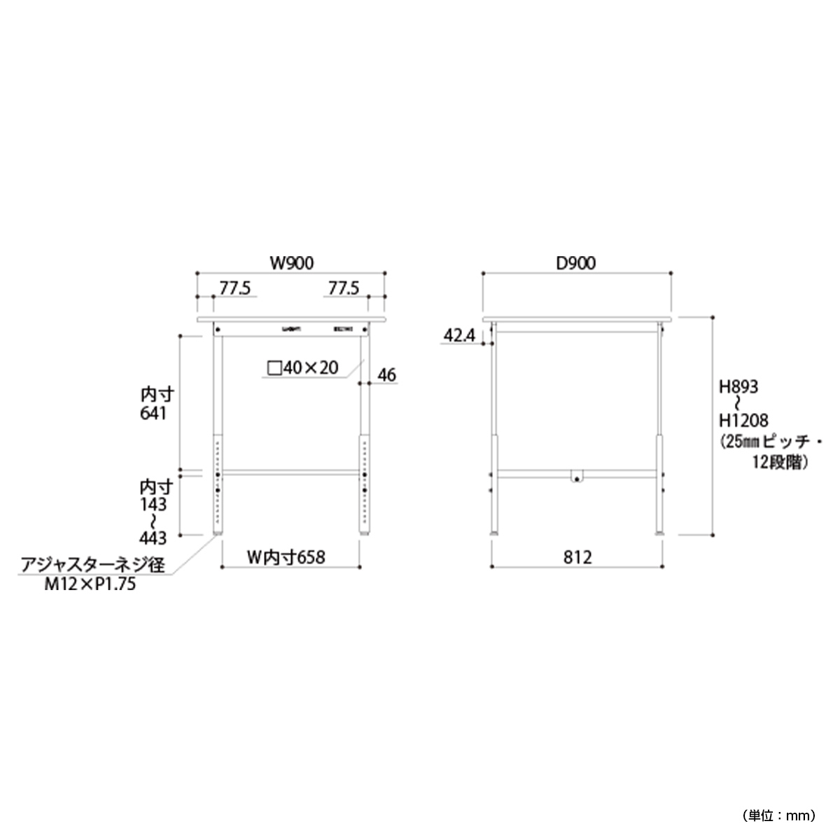 高さ調節式ワークテーブル ハイタイプ(W900×D900×H900-1200)