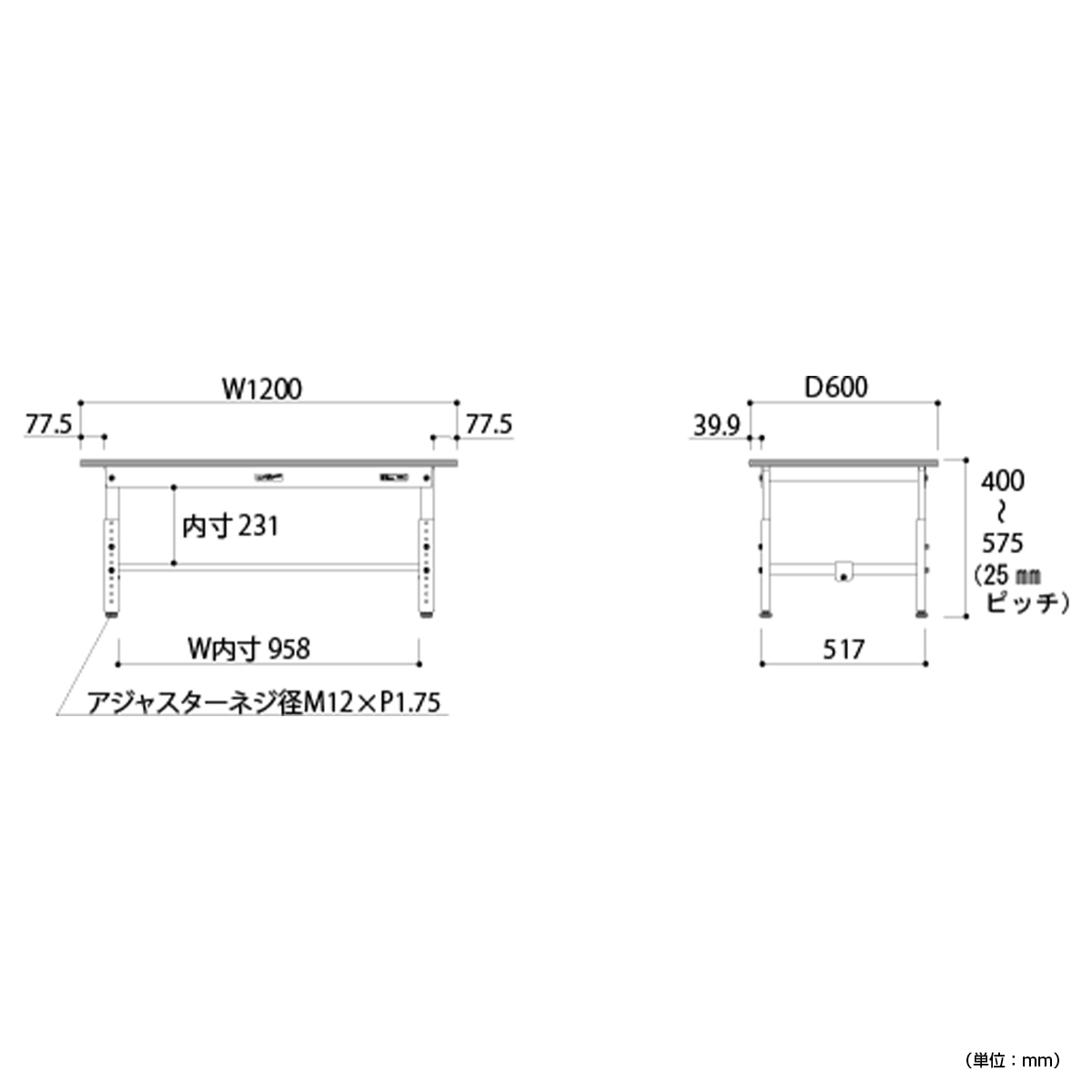 高さ調節式ワークテーブル ロータイプ(W1200×D600×H400-575)