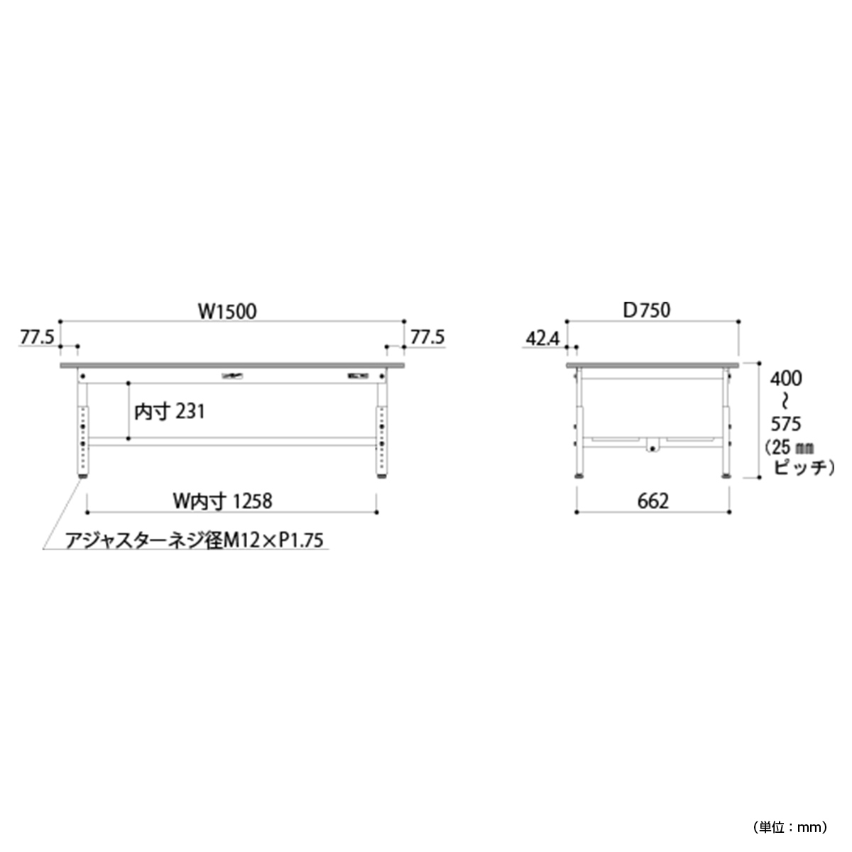 高さ調節式ワークテーブル ロータイプ(W1500×D750×H400-575)