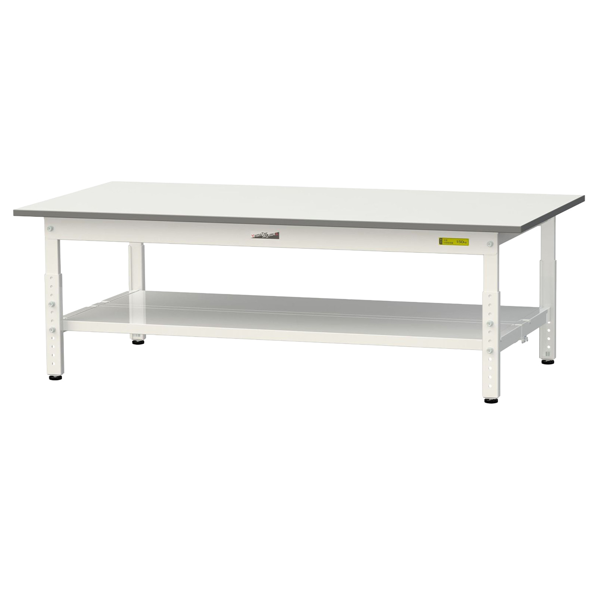 耐荷重150kgで軽作業に最適化された、幅1500mm×奥行750mmの高さ調整式ワークテーブルのロータイプです。