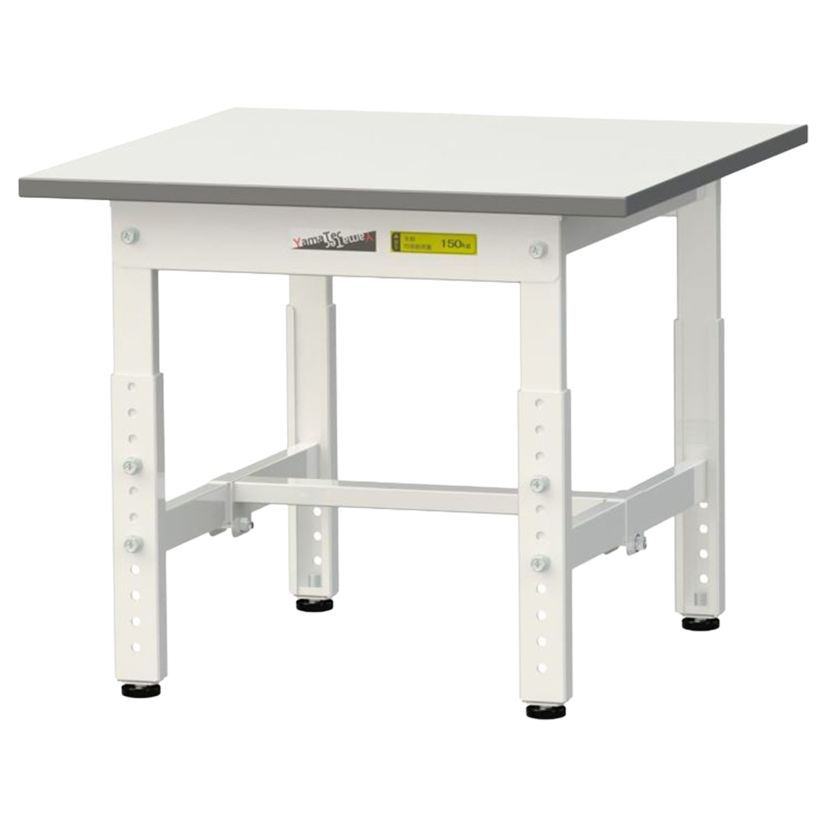 耐荷重150kgで軽作業に最適化された、幅600mm×奥行600mmの高さ調整式ワークテーブルのロータイプです。