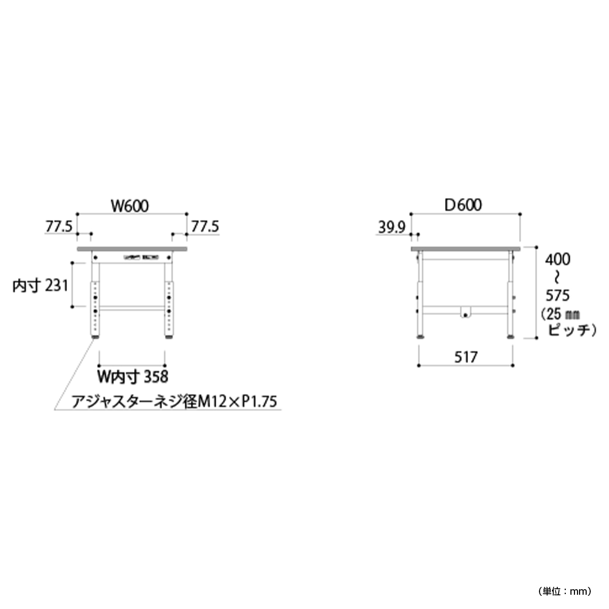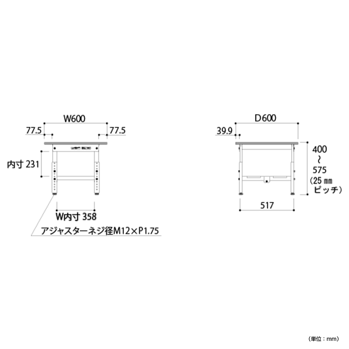| サイズ | W600×D600×H400-575mm |