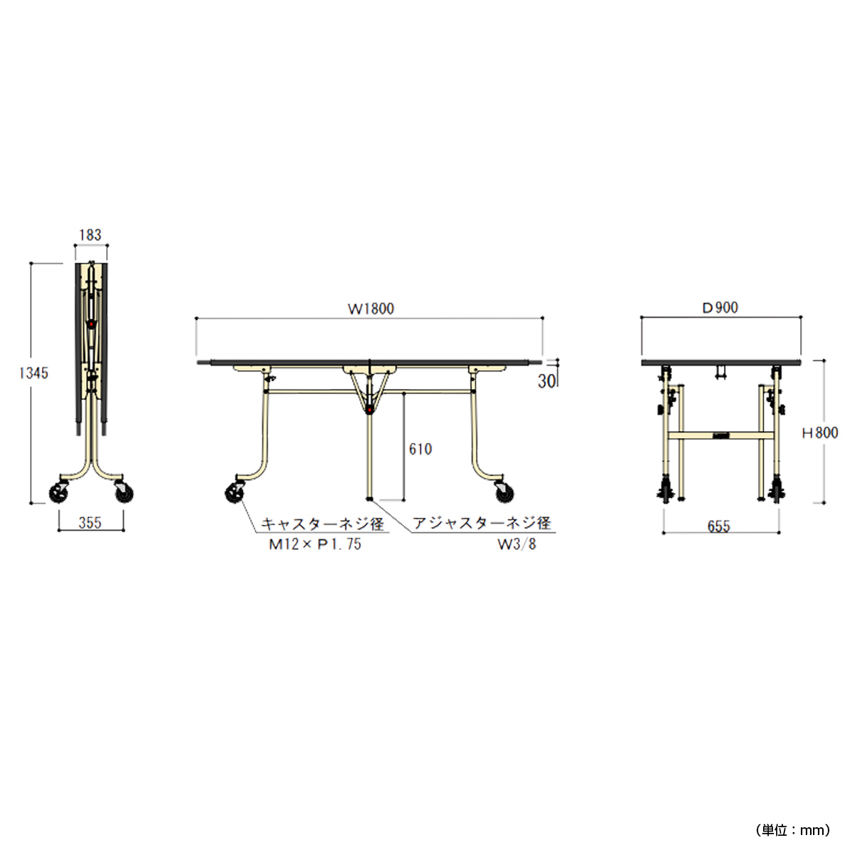 | サイズ | W1800×D900×H800mm 収納時:W355×D900×H1345mm |