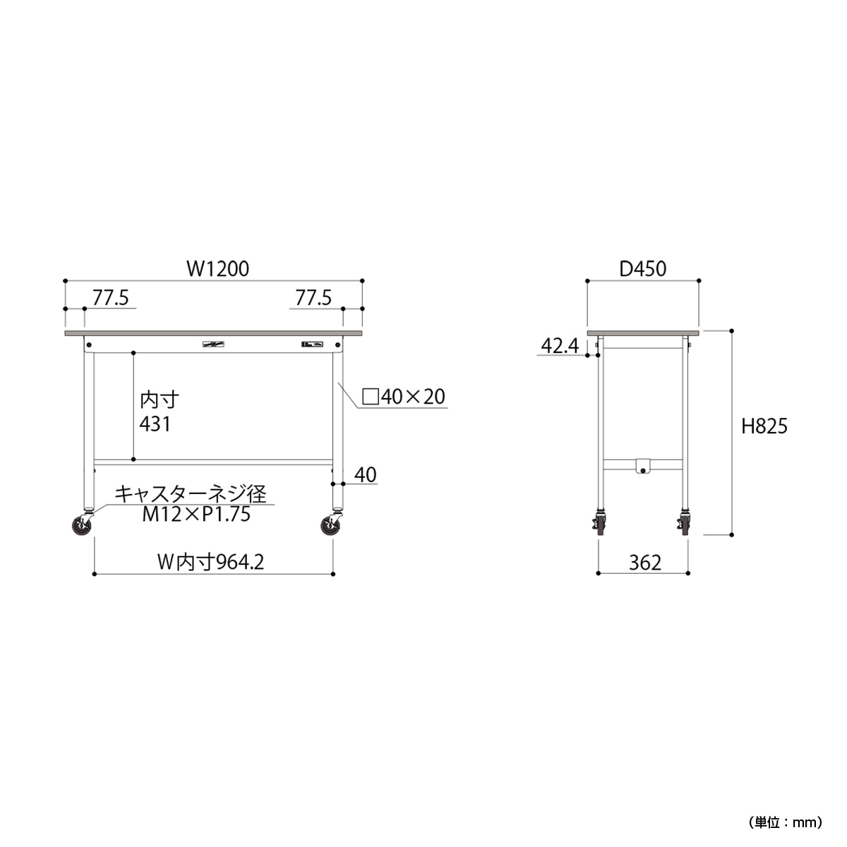 | サイズ | W1200×D450×H825mm |