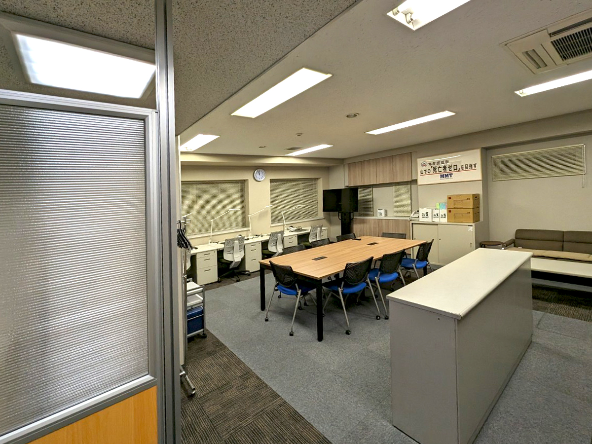 FADシリーズのフリーアドレステーブル、メラミン上部半透明ローパーテーションをご使用いただきました。