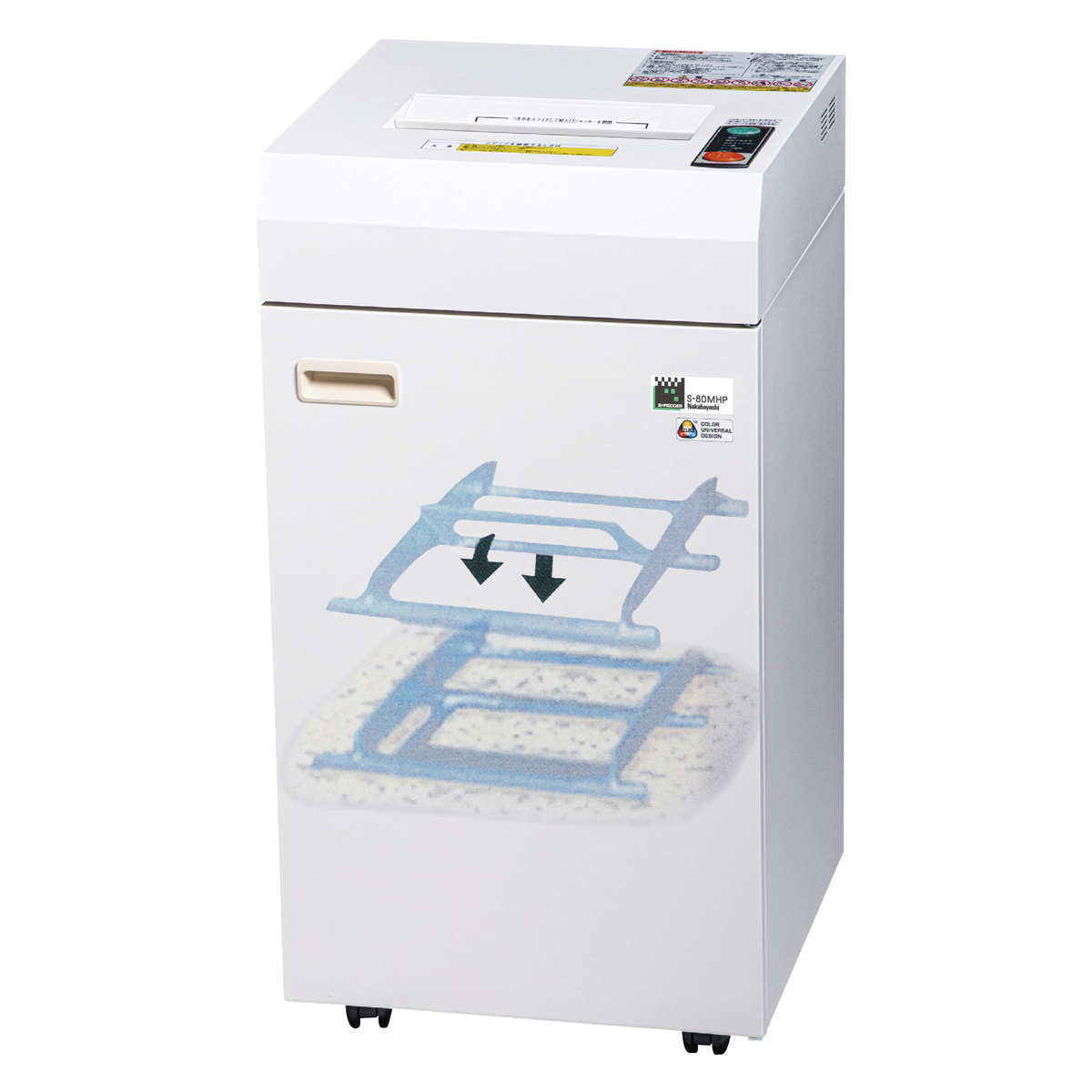高性能モーターユニットを搭載し、最大80枚を一度に細断できるハイパワーと省エネ性能を実現しております。
