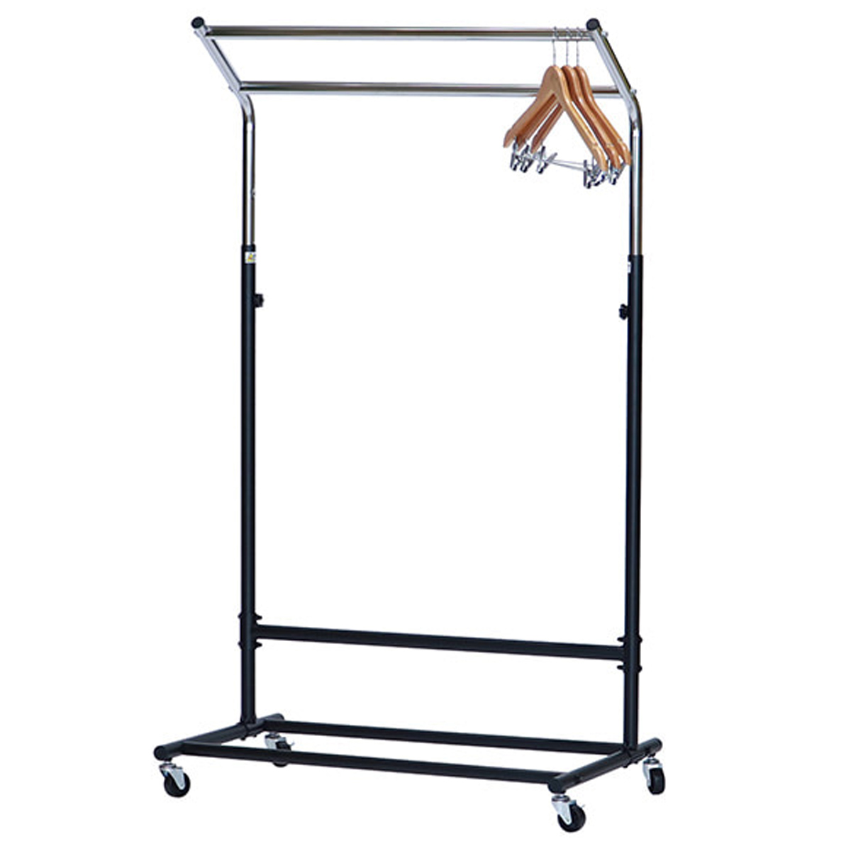 2本のハンガーパイプで衣類を見やすく収納でき、高さは120~160cmまで調節可能。