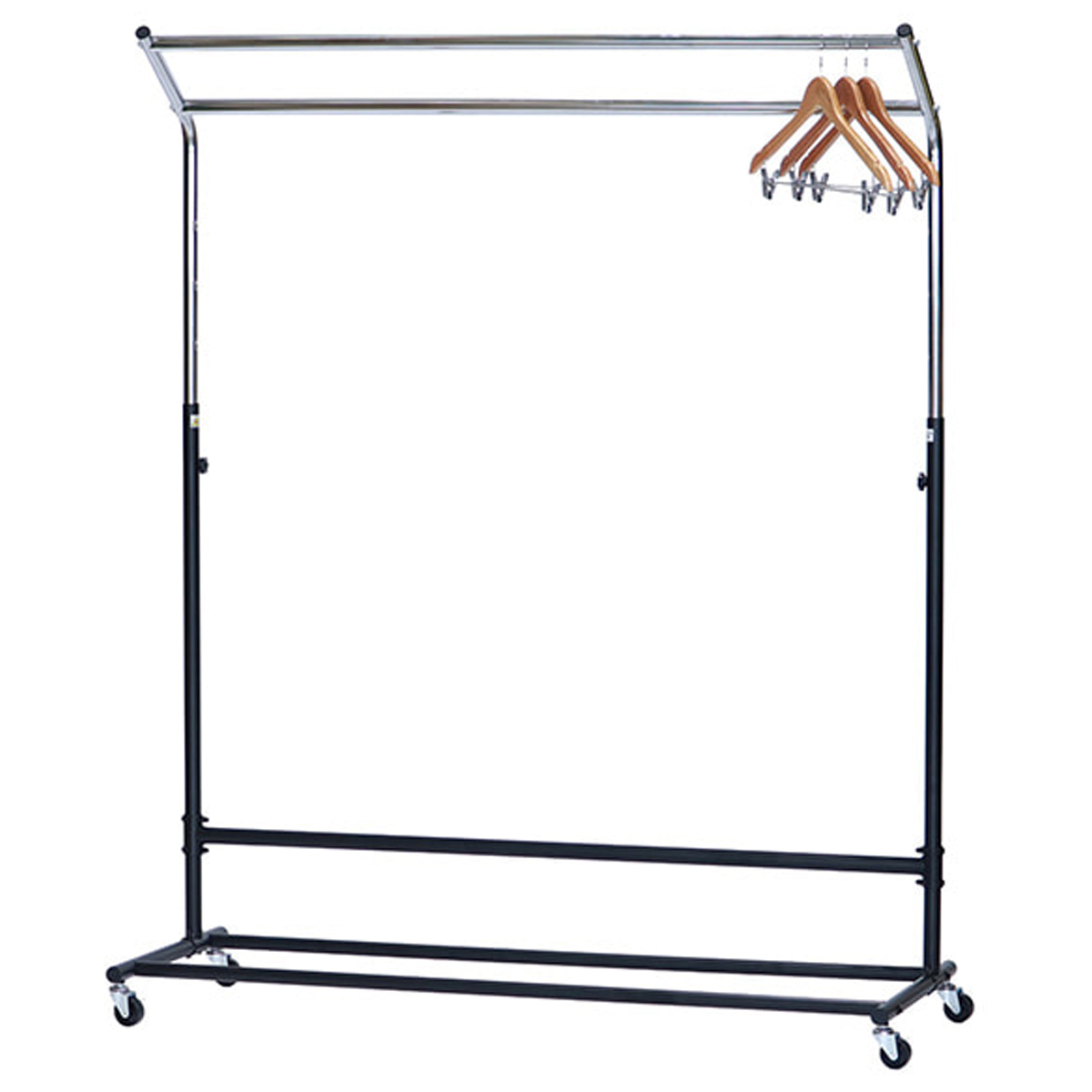 2本のハンガーパイプで衣類を見やすく収納でき、高さは120〜160cmまで調節可能。