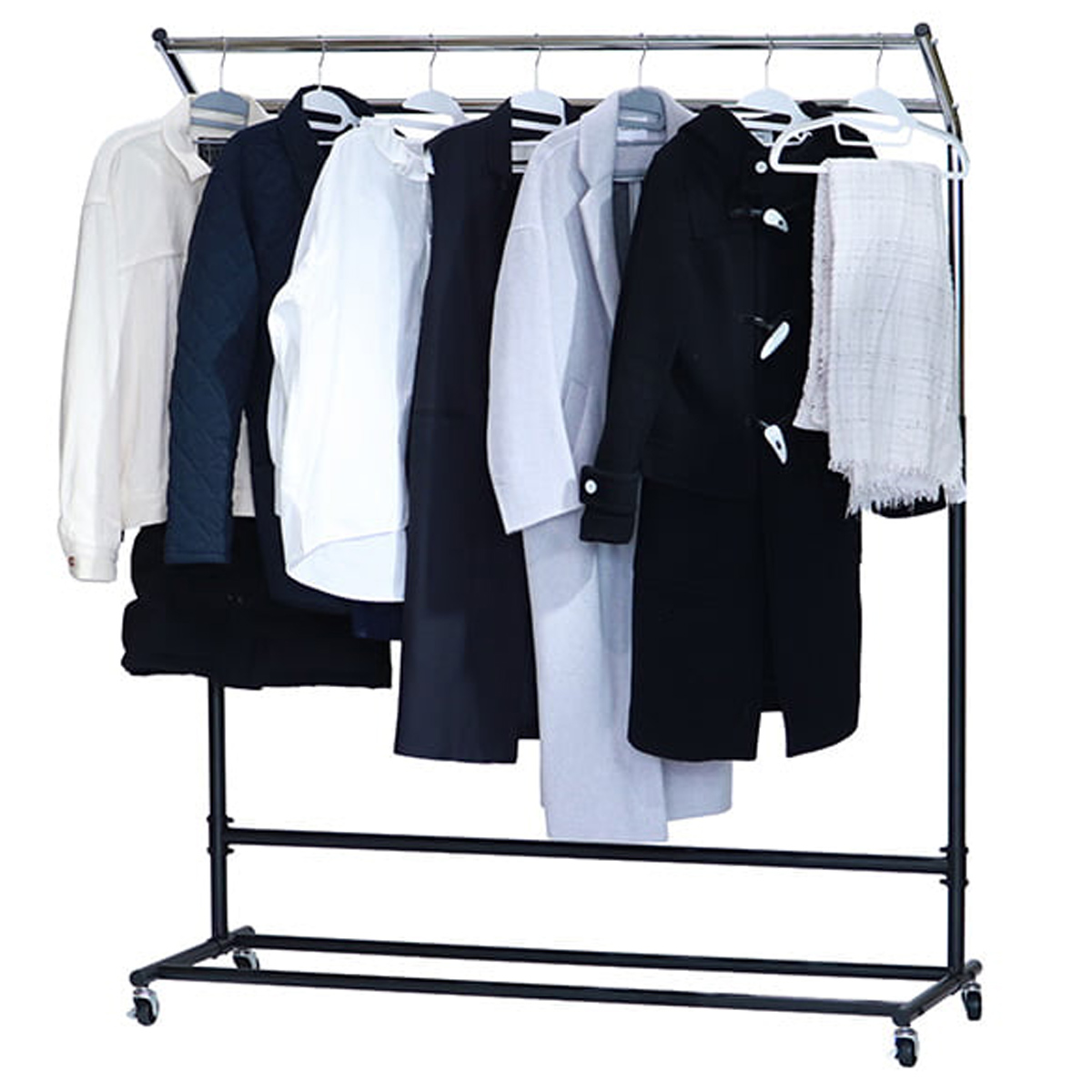 アウターからジャケットまで、たくさん掛けても安心の耐荷重100㎏で、重いコートも複数枚まとめて収納可能。