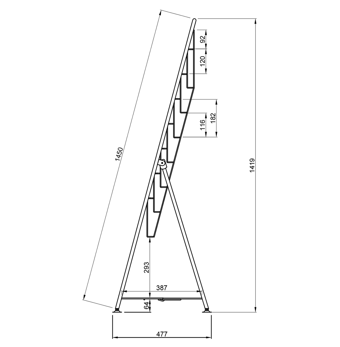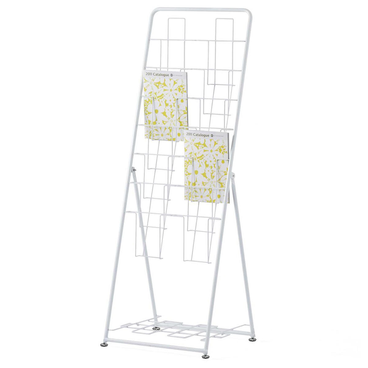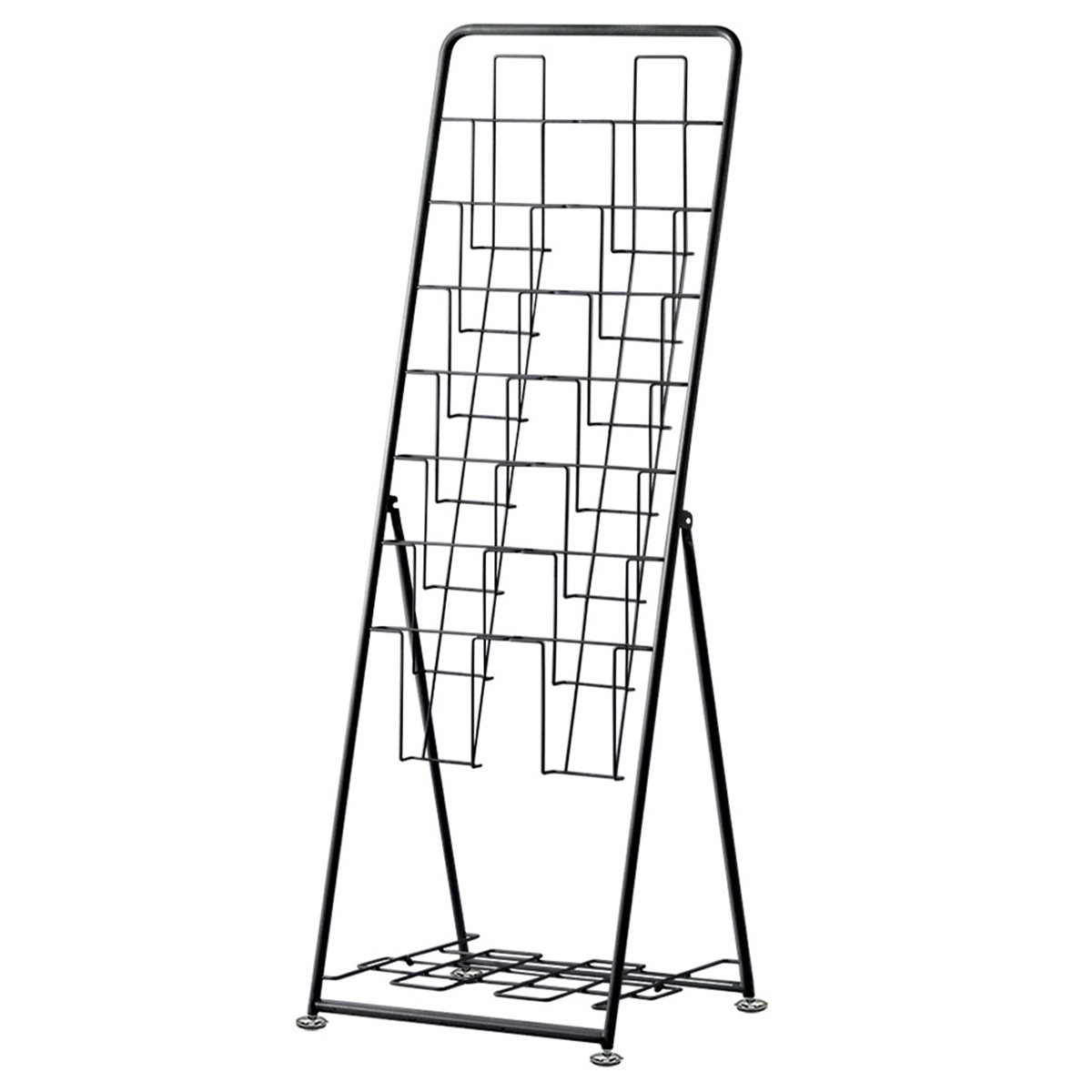 A4サイズのパンフレットを7段2列に収納できる、折りたたみ式のパンフレットスタンドです。