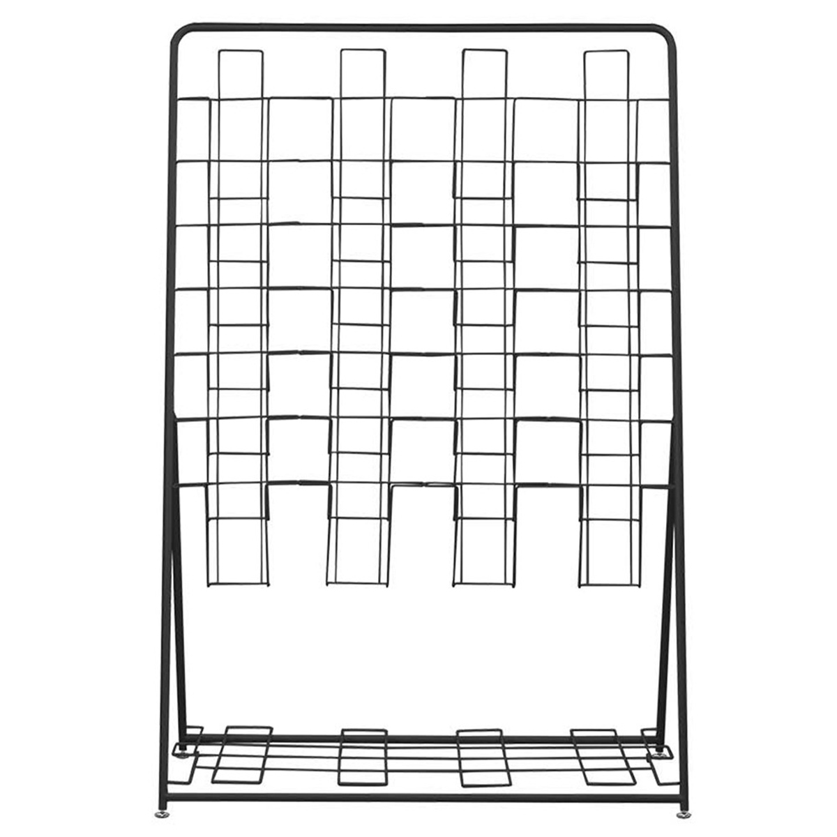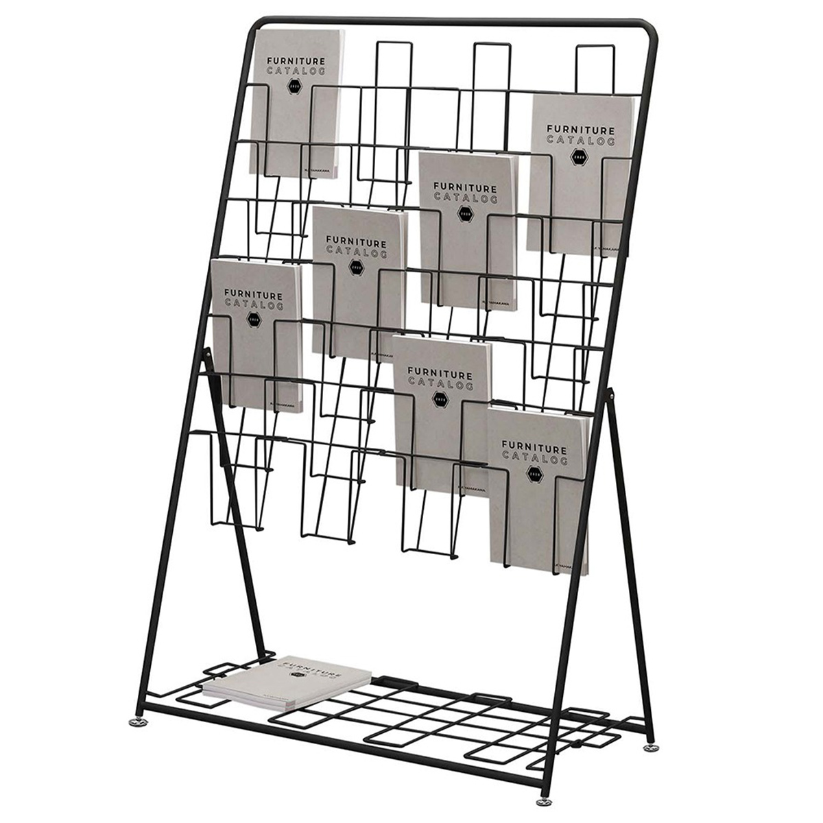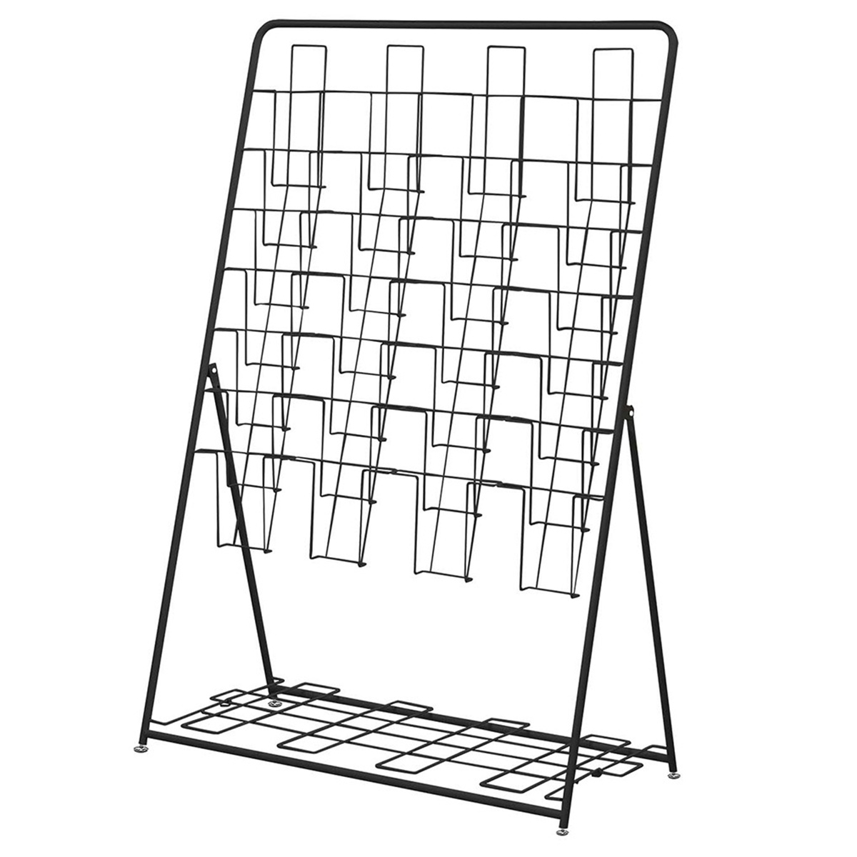 折りたたみ式のパンフレットスタンドで、A4サイズのカタログを7段4列に収納できます。