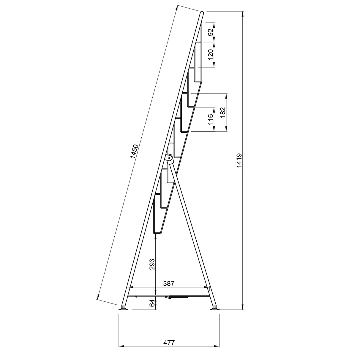 A4サイズのパンフレットを7段4列に収納できる、折りたたみ式のパンフレットスタンドです。