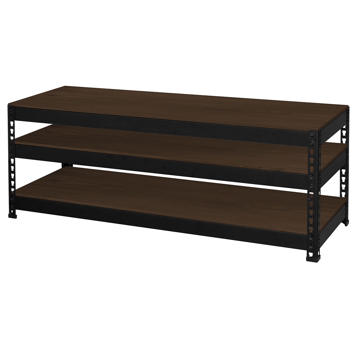 可動棚付きの3段仕様で収納力も抜群、ボルトレス構造でゴムハンマーだけで簡単に組み立てられます。