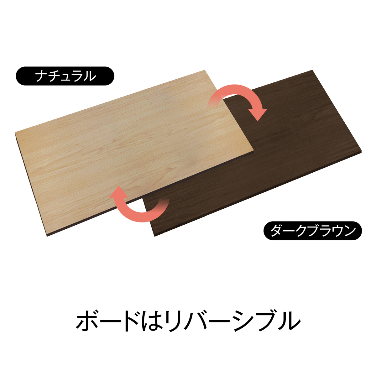 リバーシブル天板で部屋の雰囲気に合わせてカラーを選べます。